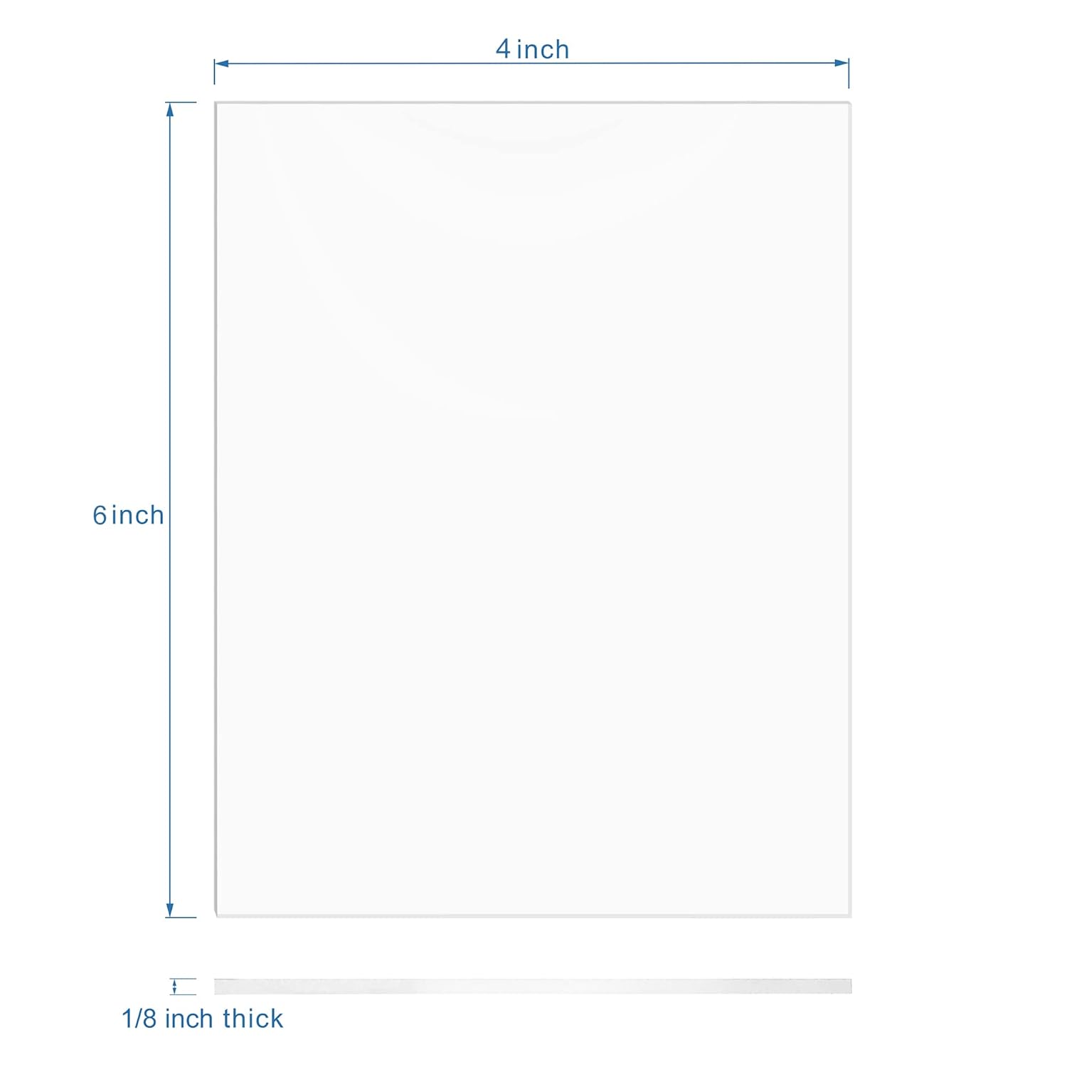 - It measures 4 x 6 inches with 1/8 inch thick (0.118" / 3mm nominal). Please remove the protective film on both sides of the acrylic piece before use.