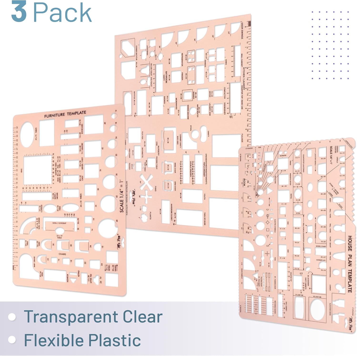 Mr. Pen- House Plan, Interior Design and Furniture Templates, Drafting Tools and Ruler Shapes for Architecture - Set of 3