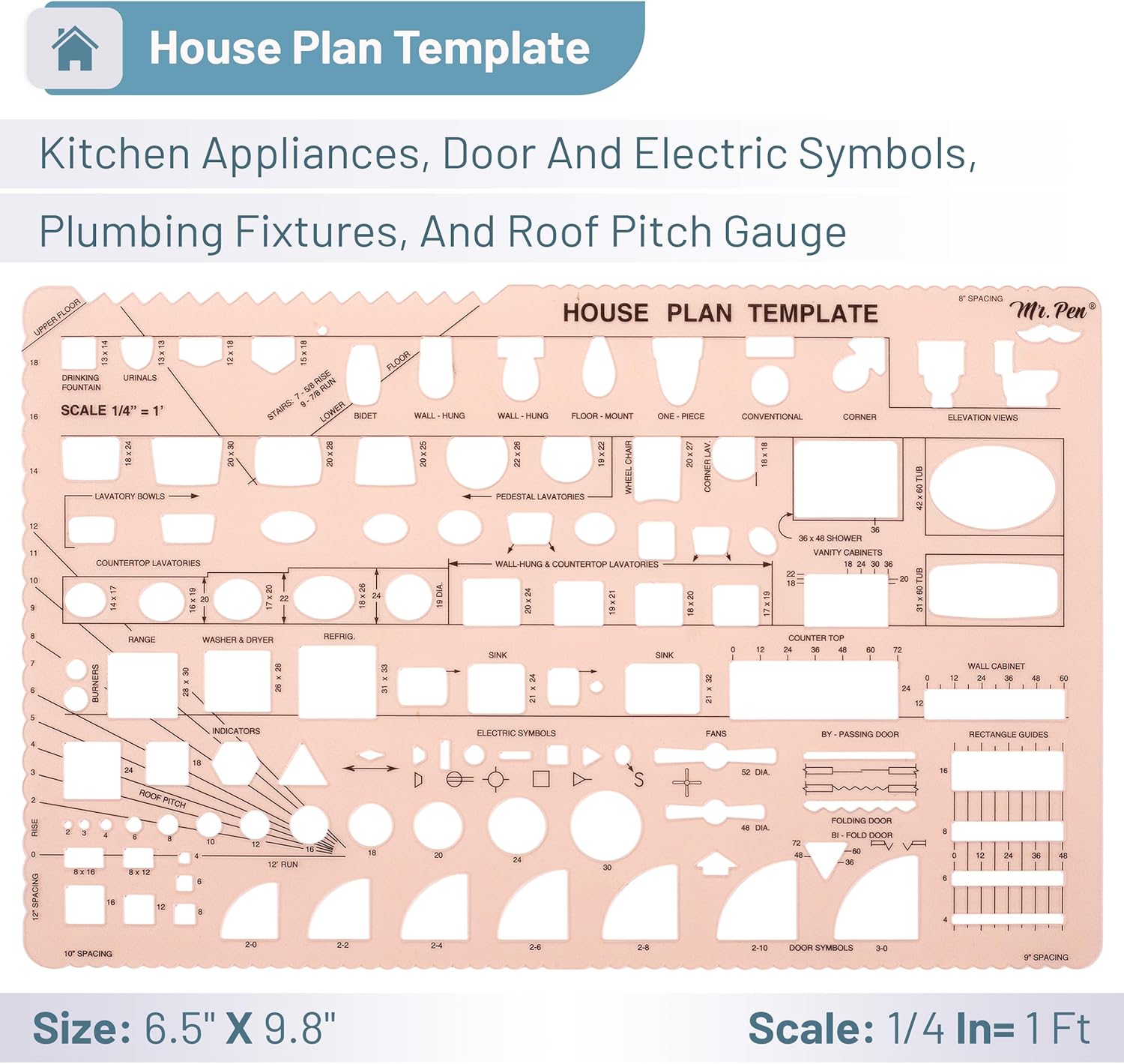 - Mr. Pen house plan template is expertly designed for architects, builders, and contractors, offering unparalleled accuracy at a scale of 1/4 inch to 1 foot.