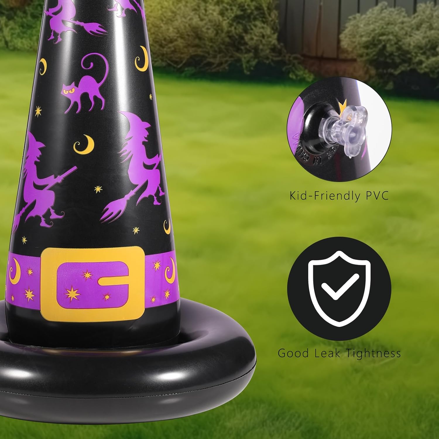 - ๐๐ญ๐๐ฒ ๐๐ญ๐๐๐๐ฒ - Now includes tape to keep the inflatable witch hats securely in place on smooth surfaces. Enjoy uninterrupted gameplay without worrying about the hats being knocked over by the rings.