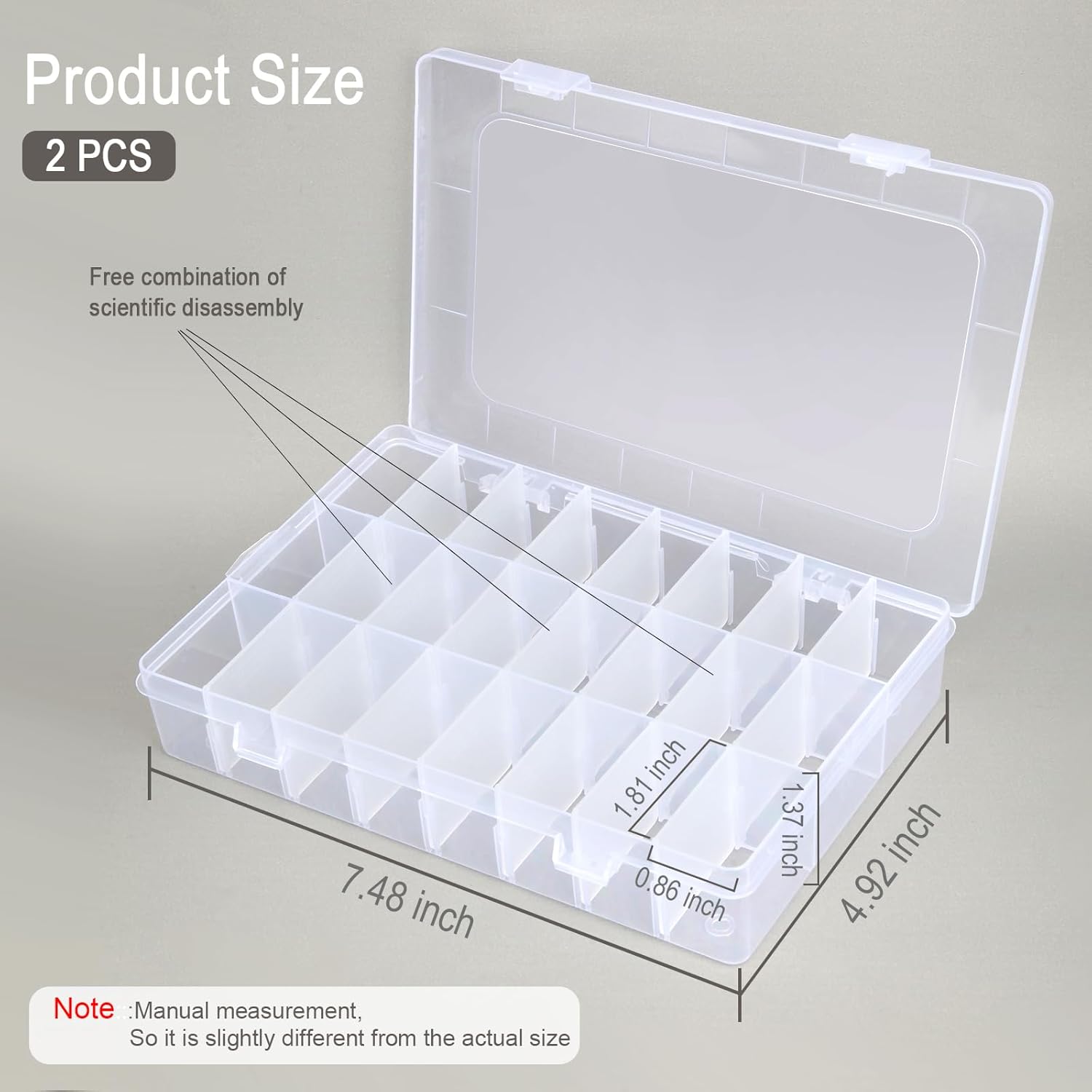 2Pack 24 Grids Craft Organizers and Storage Bead Organizer Tackle Box Organizer with Adjustable Divider, Plastic, Clear