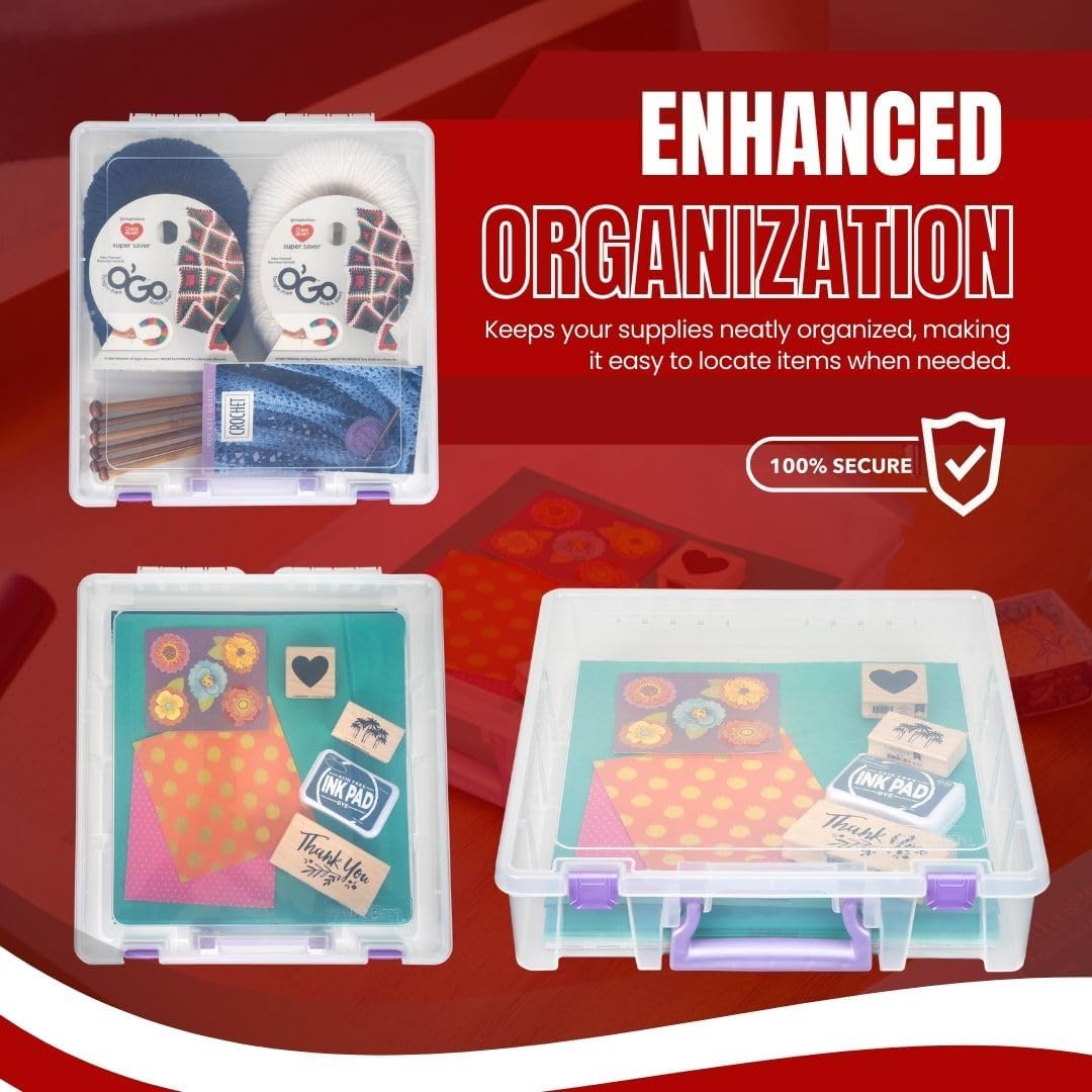 - Product Specifications: Measures 15.25 x 14 x 3.5 inches, ideal for 12-inch scrapbook supplies. Clear design for easy viewing.