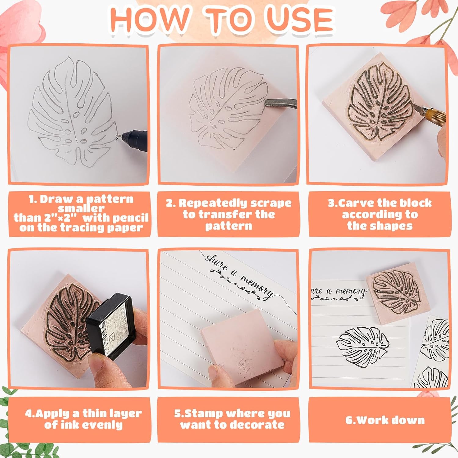 - High Compatibility: the rubber blocks accept transfers from laser printers, ink jet printers and pencil manuscripts, after transferring the patterns, you just need to carve the block according to the shapes