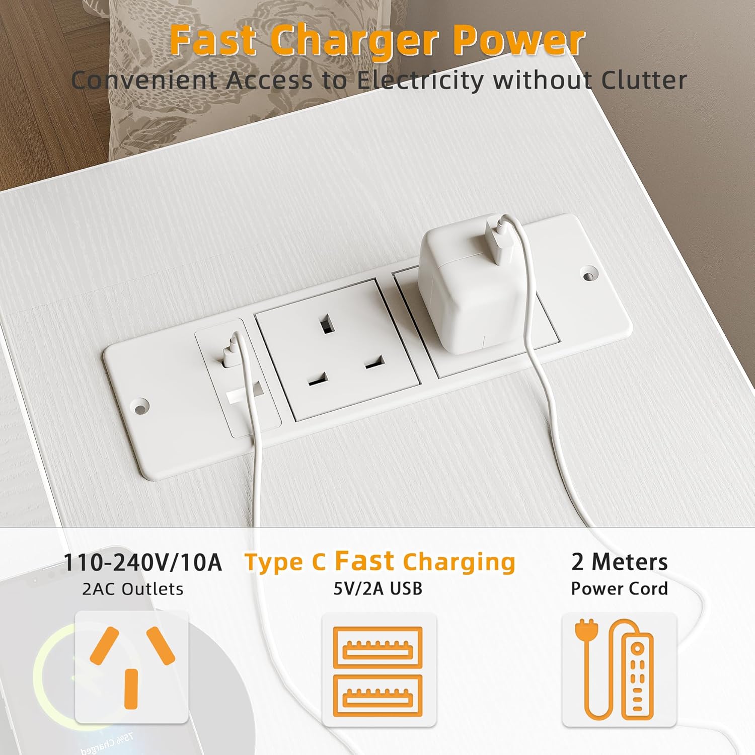 - L Shape Desk with Power Outlets - The l desk has built-in power outlets featuring two AC outlets, one USB port, and one Type-C port, simplifying charging and cutting down on cable clutter.