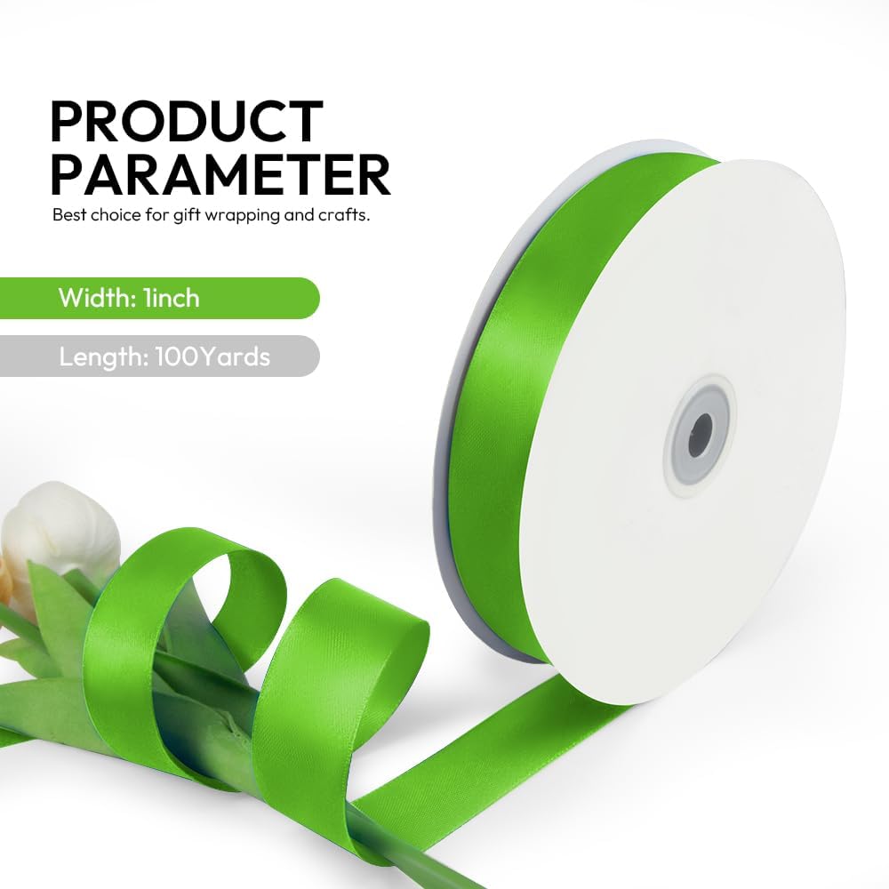 1 Inch 100 Yards Satin Ribbon Apple Green, Solid Color Fabric Ribbon for Gift Wrapping, Wedding, Polyester Gift Ribbon for Birthday Party Decoration, Craft, Hair, Floral, Sewing