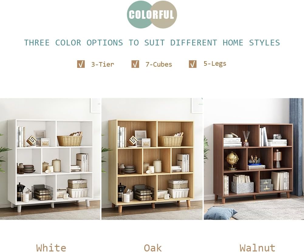 IOTXY Open Cube Low Bookcase - 3-Tier Freestanding Storage Display Cabinet Organizer with Legs for Home Office, 7-Cubes Open Shelf Short Bookshelf, White