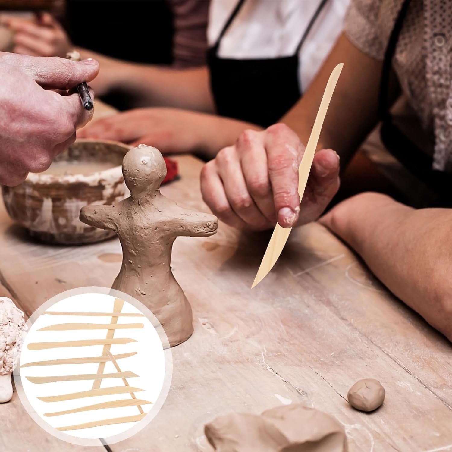 - Wooden carving kit: Wood handle clay pottery sculpting tools pottery carving tools clay spatula clay sculpting modeling tools carving sculpture shaper double- sided set for pottery
