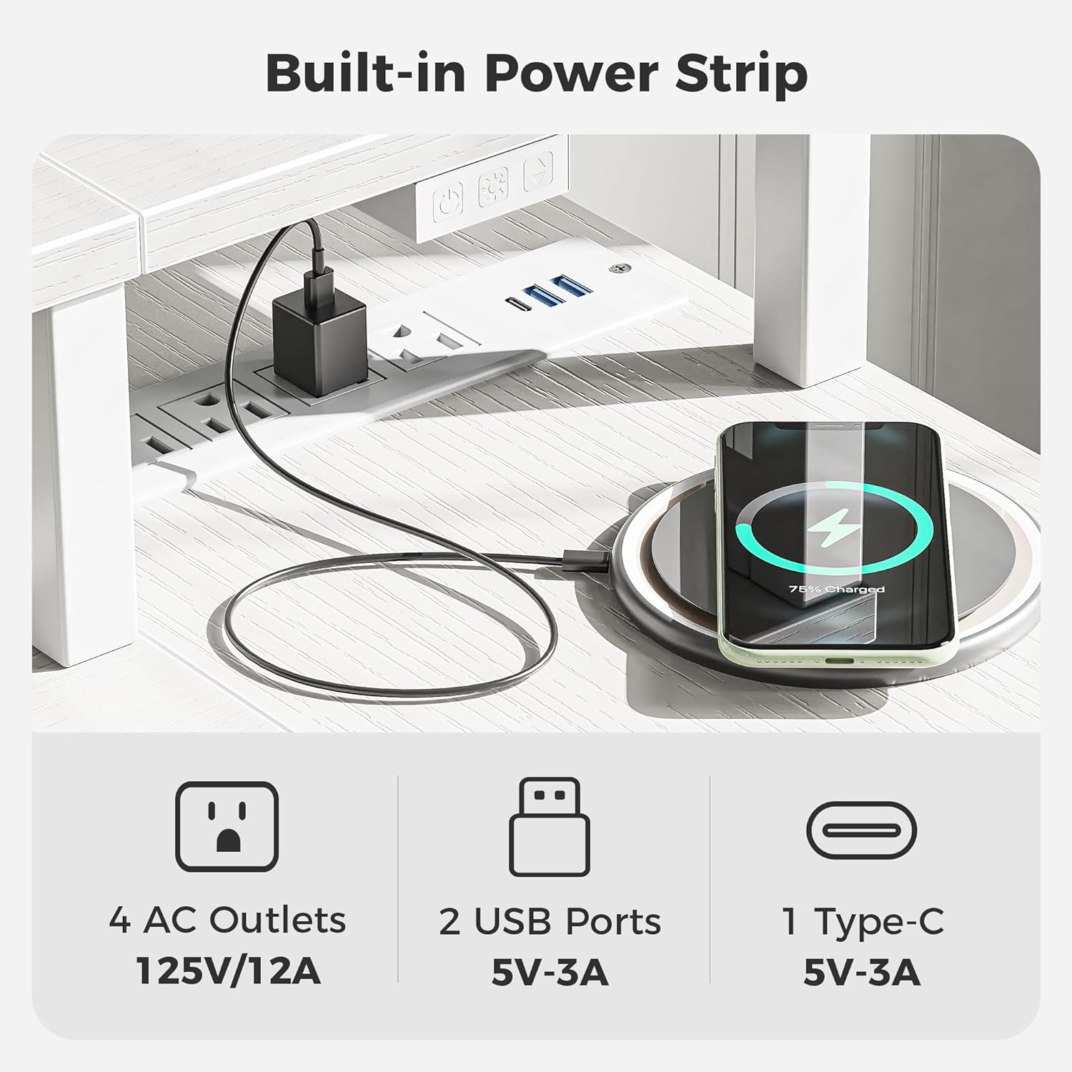 - 【Power Strips & Monitor Shelf】This computer desk is equipped with4 Standard Plug Outlets, 2 USB Ports, and 1 Type-C port, which can easily charge phones laptops, gaming gear and other office devices. Monitor stand on the desktop elevates your line of sight, allowing you to maintain proper sitting posture and protect your cervical and spinal health