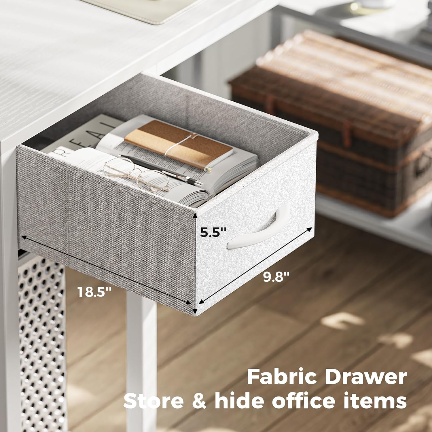 - 【Desk With Storage】The desktop and 2 storage shelves on the side allow you to store unlimited office supplies. The pc tower can be placed on the bottom shelf and there is a fabric drawer to store stationery and other privacy items. Super practical design