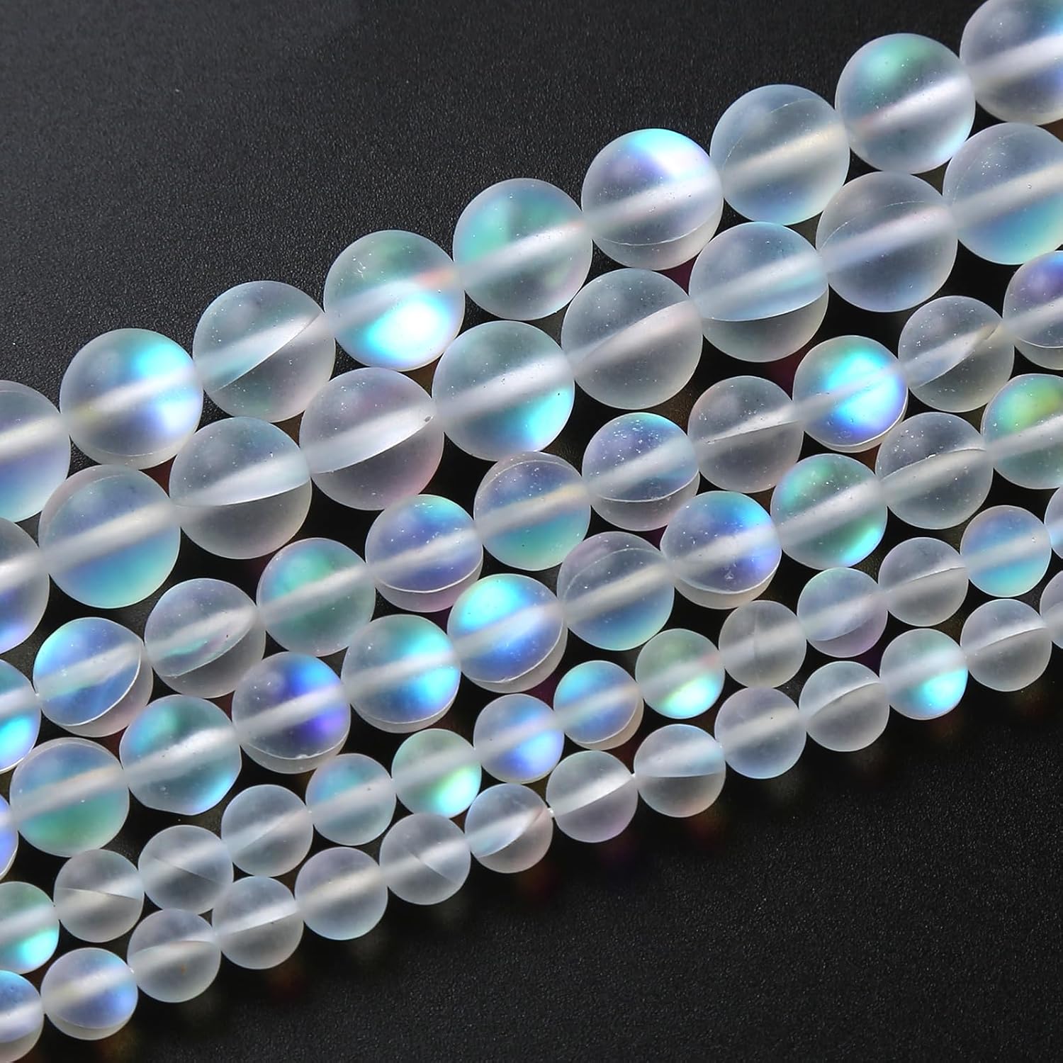 32pcs 10mm Natural White Mystic Aura Quartz Beads Frosted Matte Moonstone Round Loose Beads For Jewelry Making DIY Bracelet Necklace 15"