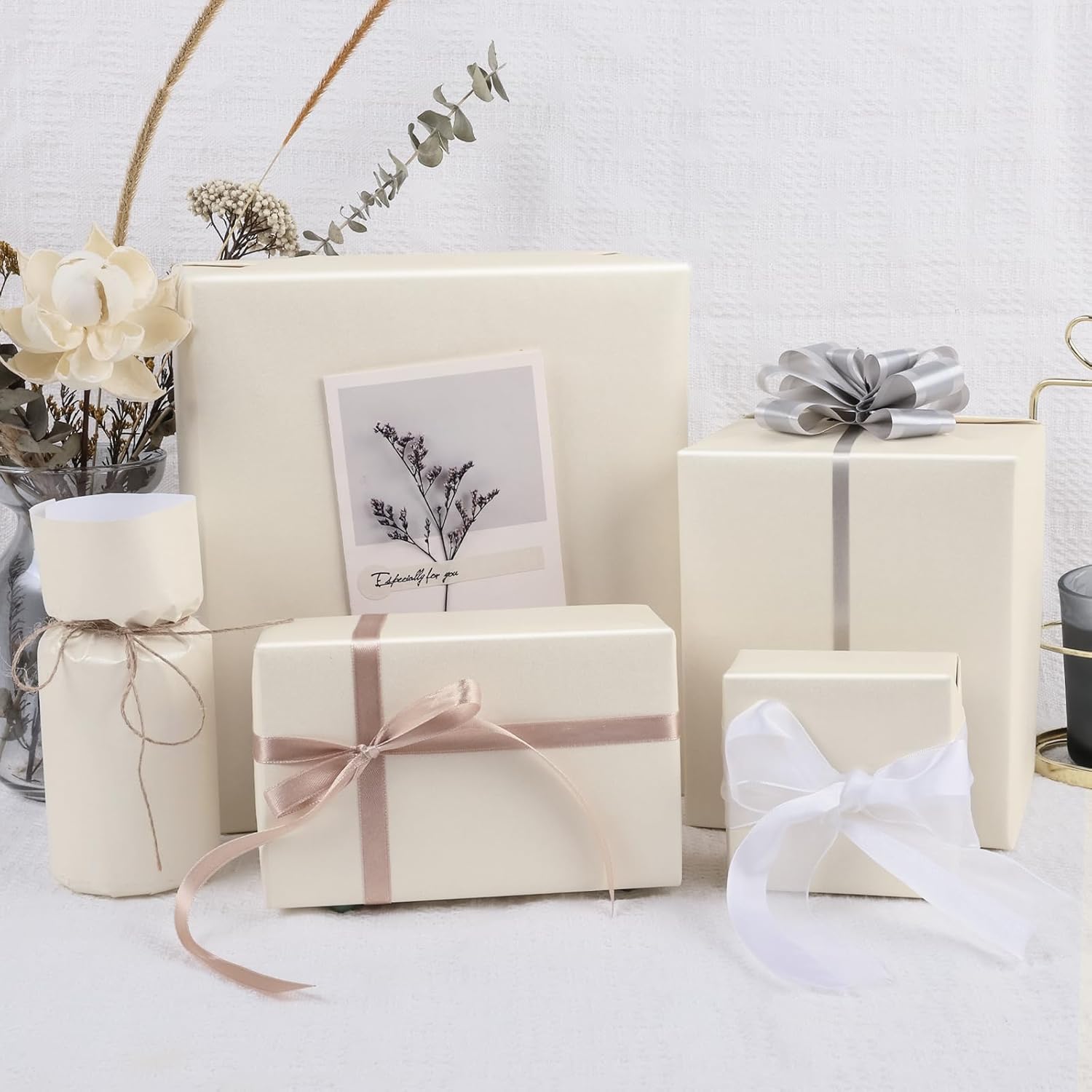 NESCCI Off white Matte Wrapping Paper,Solid Color Pearly-Lustre Paper-3 Roll,17 Inches X 32.8 Feet Per roll.Gift Wrapping Paper,Perfect for Wedding,Birthday, Christmas,DIY Bouquet