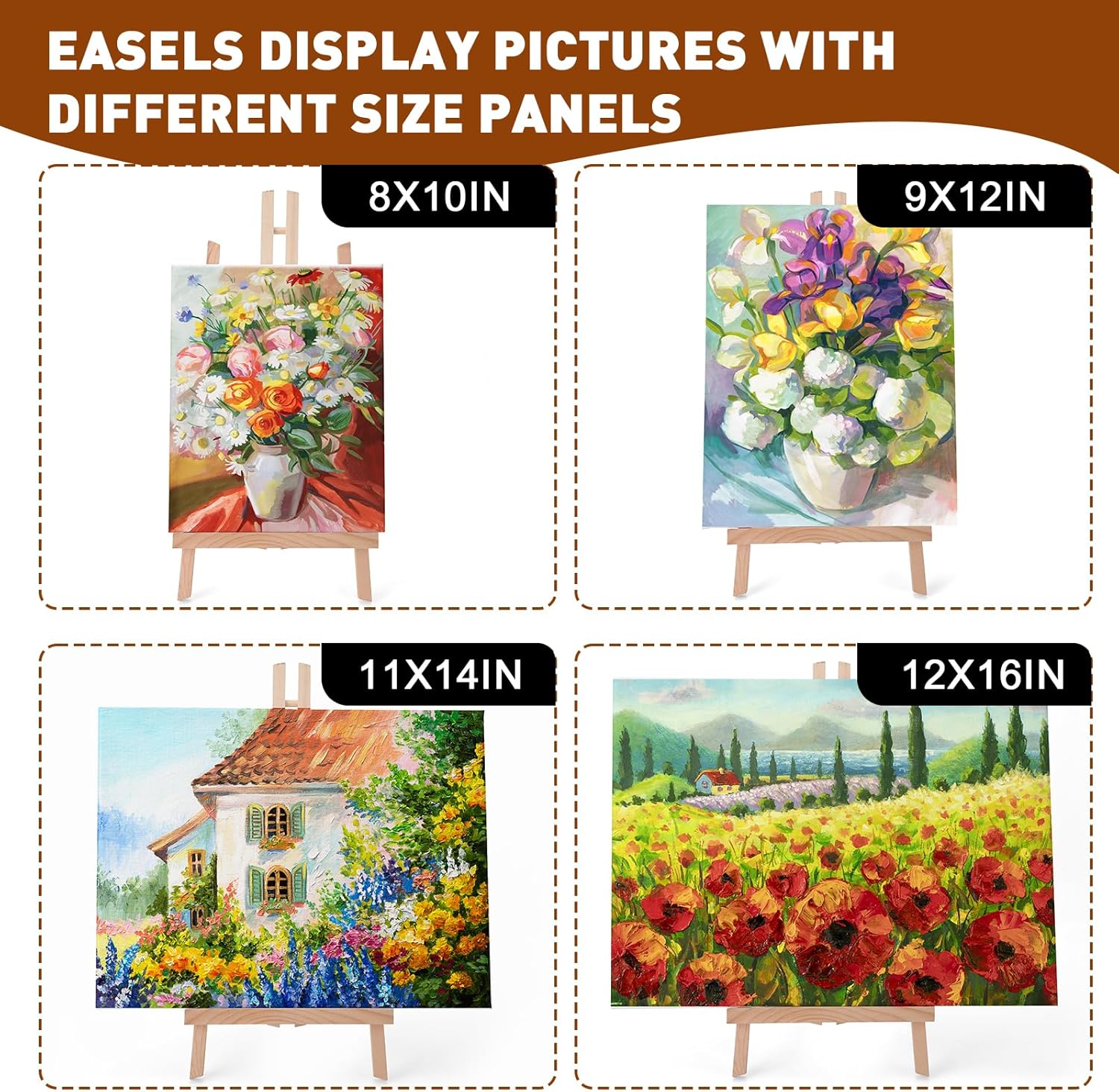 - 【Easels Size】: Easel for painting 39cm (15 in) high by 19 cm (7.5 in) wide, these tabletop easels are perfect for limited spaces,professional triangular wooden easel, can meet all your needs. Multi-functional small paint easel is ideal for watercolor, oil painting, gouache painting, and acrylic painting or for painting display.
