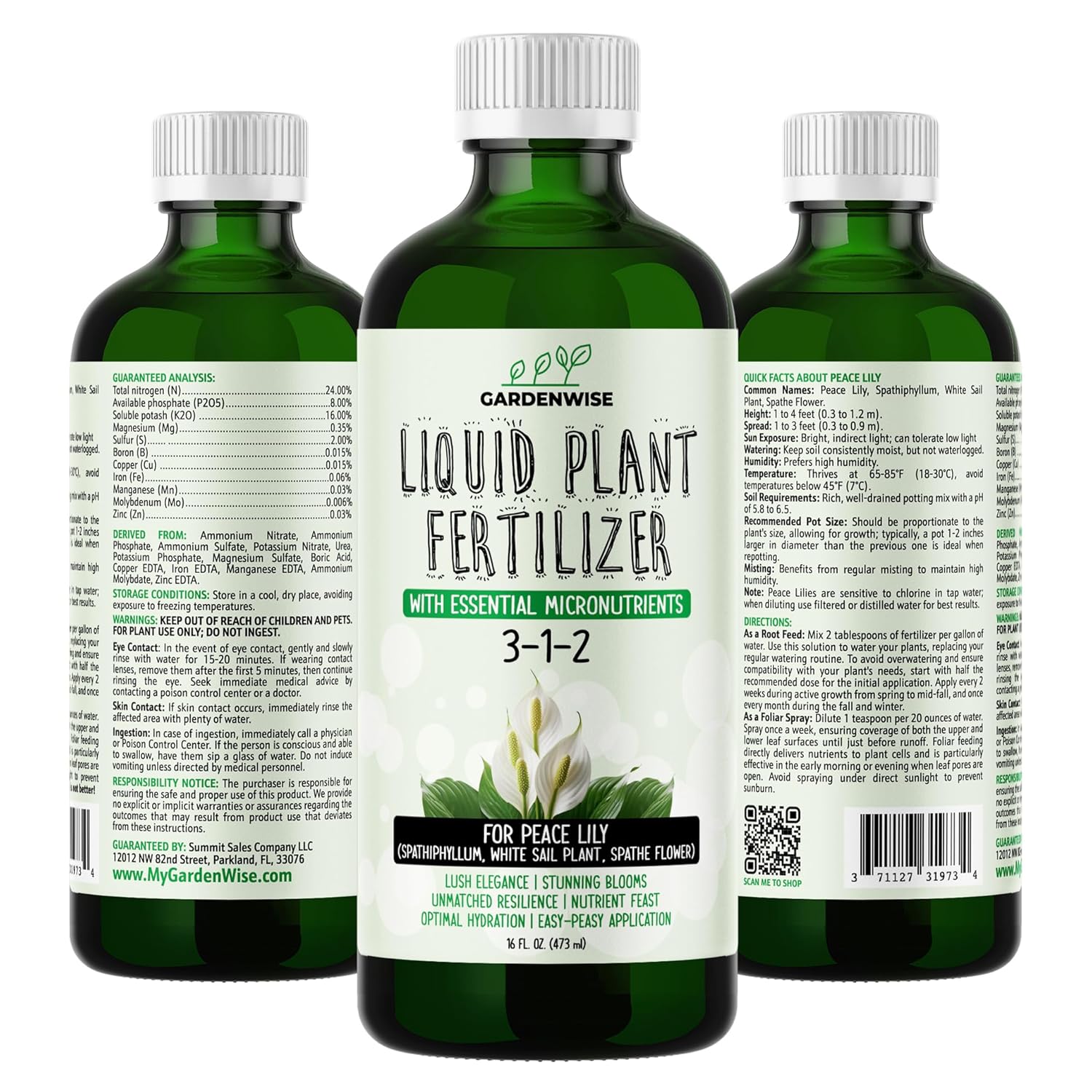 Peace Lily Fertilizer: 3-1-2 Liquid Fertilizer with Essential Micronutrients - The Ultimate Food for Spathiphyllum, Perfect for Indoor Plants (16 OZ)