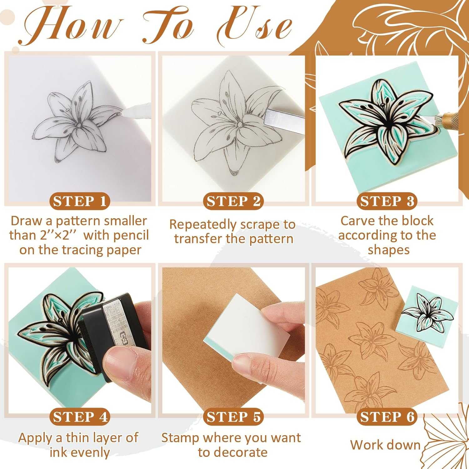 - High Compatibility: the rubber blocks accept transfers from laser printers, ink jet printers and pencil manuscripts, after transferring the patterns, you just need to carve the block according to the shapes
