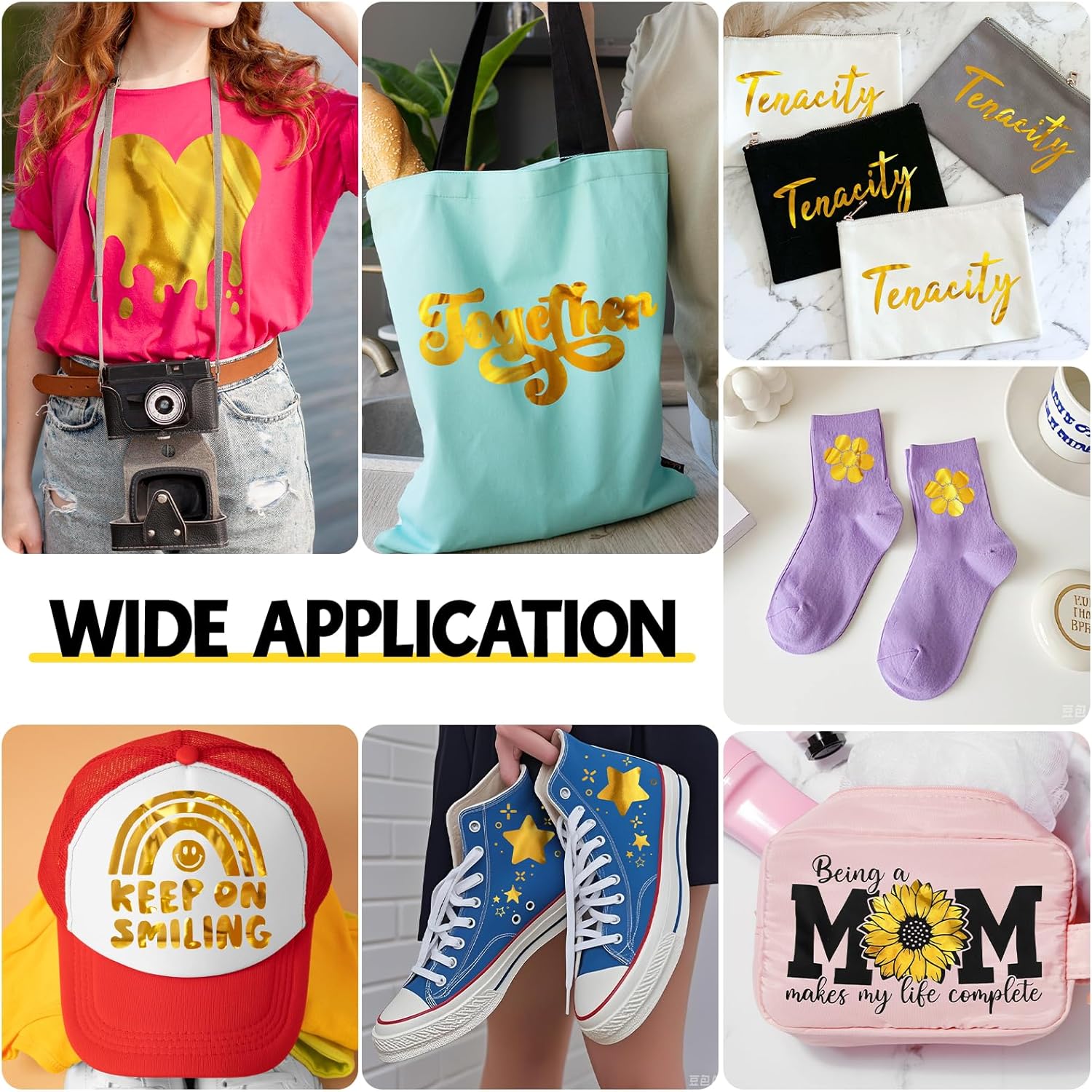 - GLOSSY FOIL METALLIC HTV – Gold iron on vinyl soft, stretchable htv ensures thin, flexible, and durable designs, perfect for T-shirts and garments. This chrome gold foil metallic gold htv heat transfer vinyl delivers a mirror-like shine, adding a dazzling chrome effect that shifts colors at different angles. Gold heat transfer vinyl is ideal for creating eye-catching, vibrant designs on T-shirts, hats, and more!