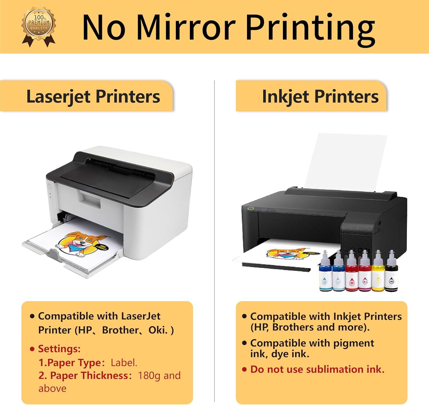 - 💕REQUIREMENTS: Laser Printers (HP,OKI,Brother) & Inkjet Printers (Dye Ink and Pigment Ink. Do NOT use sublimation ink) | Scissors or Cutting Machines (Silhouette and more) | Iron or Easy Press or Heat Press machine | Teflon Paper (in the pack).