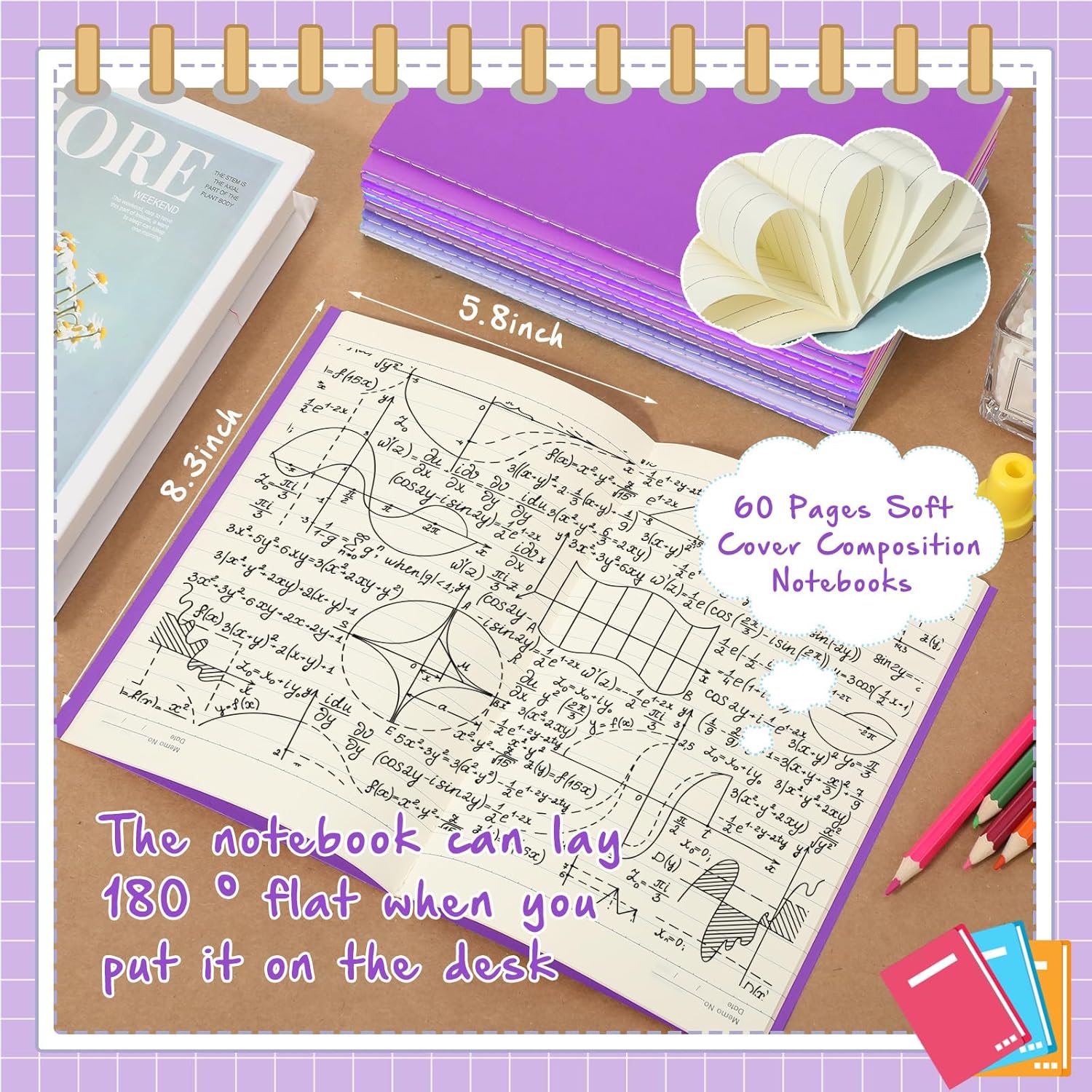 Handepo 100 Pack Composition Notebooks A5/A6 Ruled Lined Composition Kraft Notebooks Bulk Soft Cover Journals Travel Diary Memo for Students Classroom Office Supplies(A5,Purple)