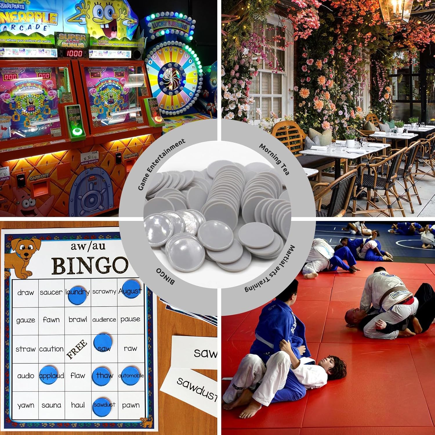 Set of 100 Opaque Plastic Learning Counters Mini Poker Chips Game Tokens with Storage Box (LightGray, 1.26 Inch)