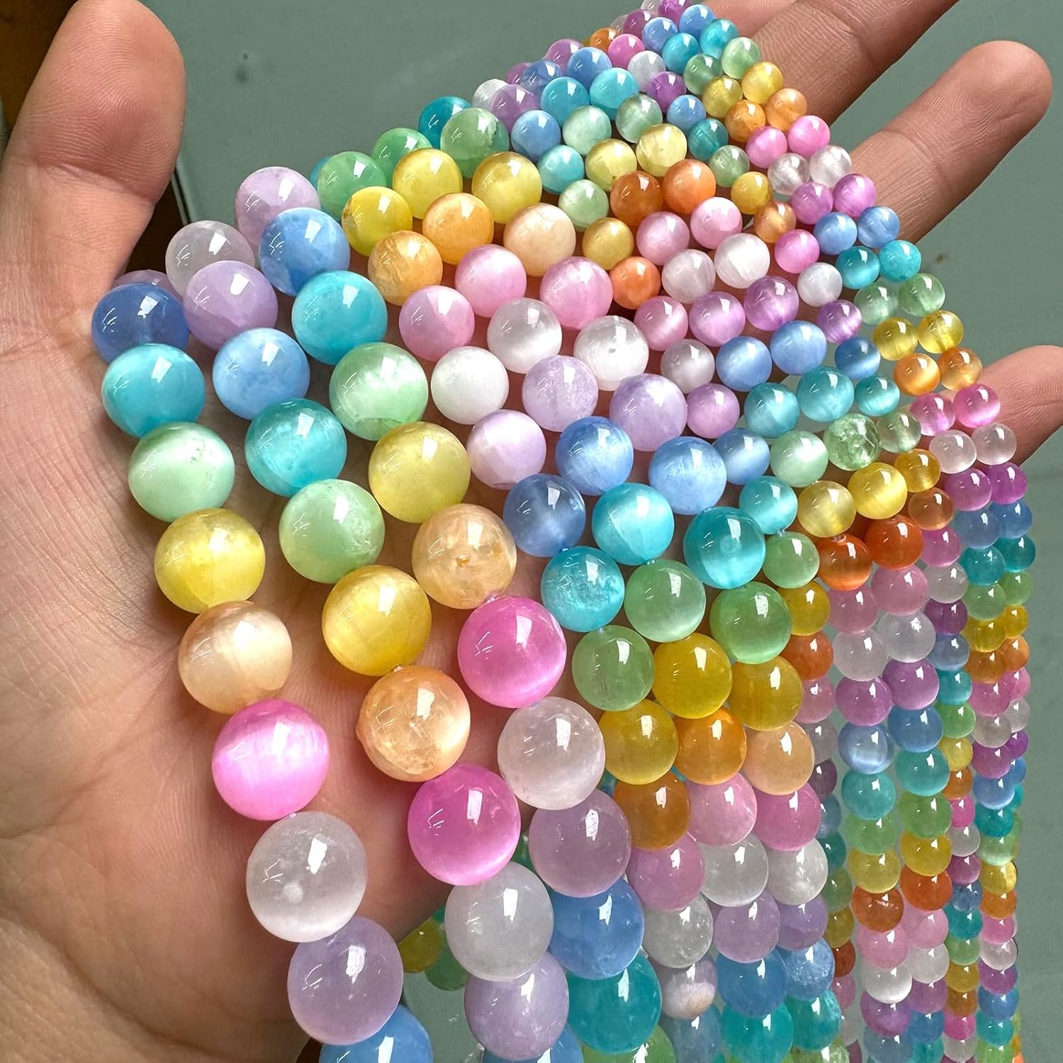 - 【Material】: Genuine Natural Colorful Selenite Gypsum Gemstones ,Round Loose Stone Beads,Energy Stone Healing Power,Help activate the mind.