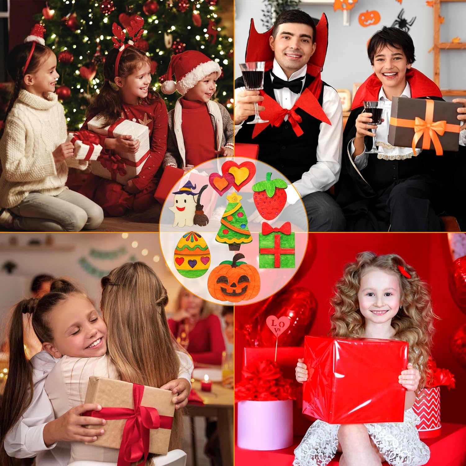 - CREATIVE GIFTS FOR KIDS: Our 48pcs diy wooden magnets would be the best gift for children, families who love handmade wood products, packaged in an exquisite box, perfect for gifts exchange, creative activities, school art projects, family crafts, classroom prizes, treasure box toys, pinata stuffers, summer crafts, Halloween crafts, Christmas stocking stuffers, Valentine's Day gift, Easter crafts basket stuffers