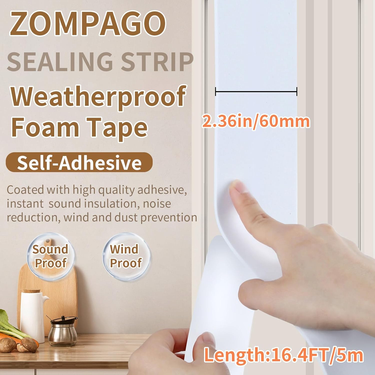EVA Self - Adhesive Foam Tape |16.4ft Length, 2.4in Widths,White,| Winter - Ready Waterproof, Dustproof, Soundproof Weather Stripping for Windows, Doors & More to Block Chilly Drafts