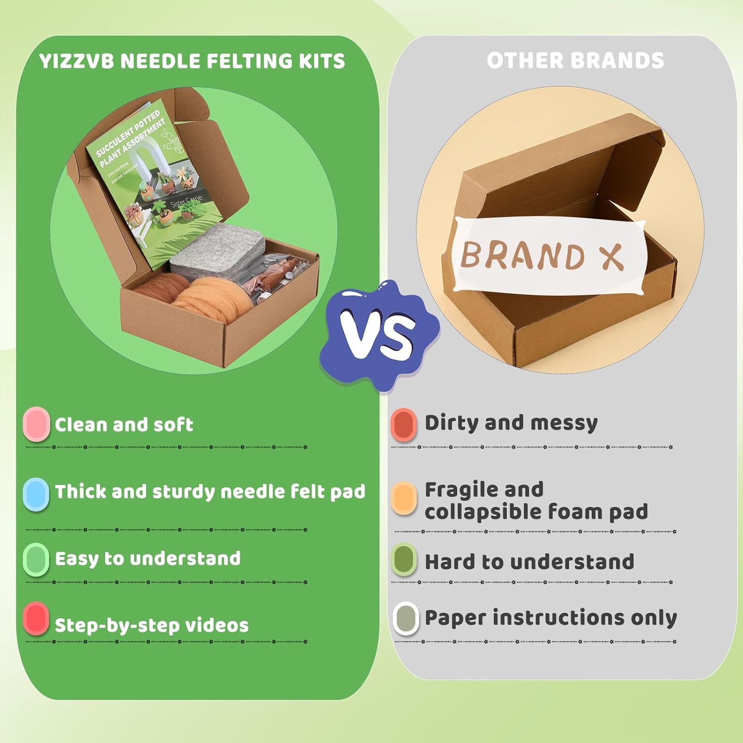 - Felting Kit For Beginner: In our succulents felt kit we have provided very detailed instructions for wool felt, so you can easily make your favorite wool felt products. The wooden handle tool is ergonomically comfortable and easy to install and remove.