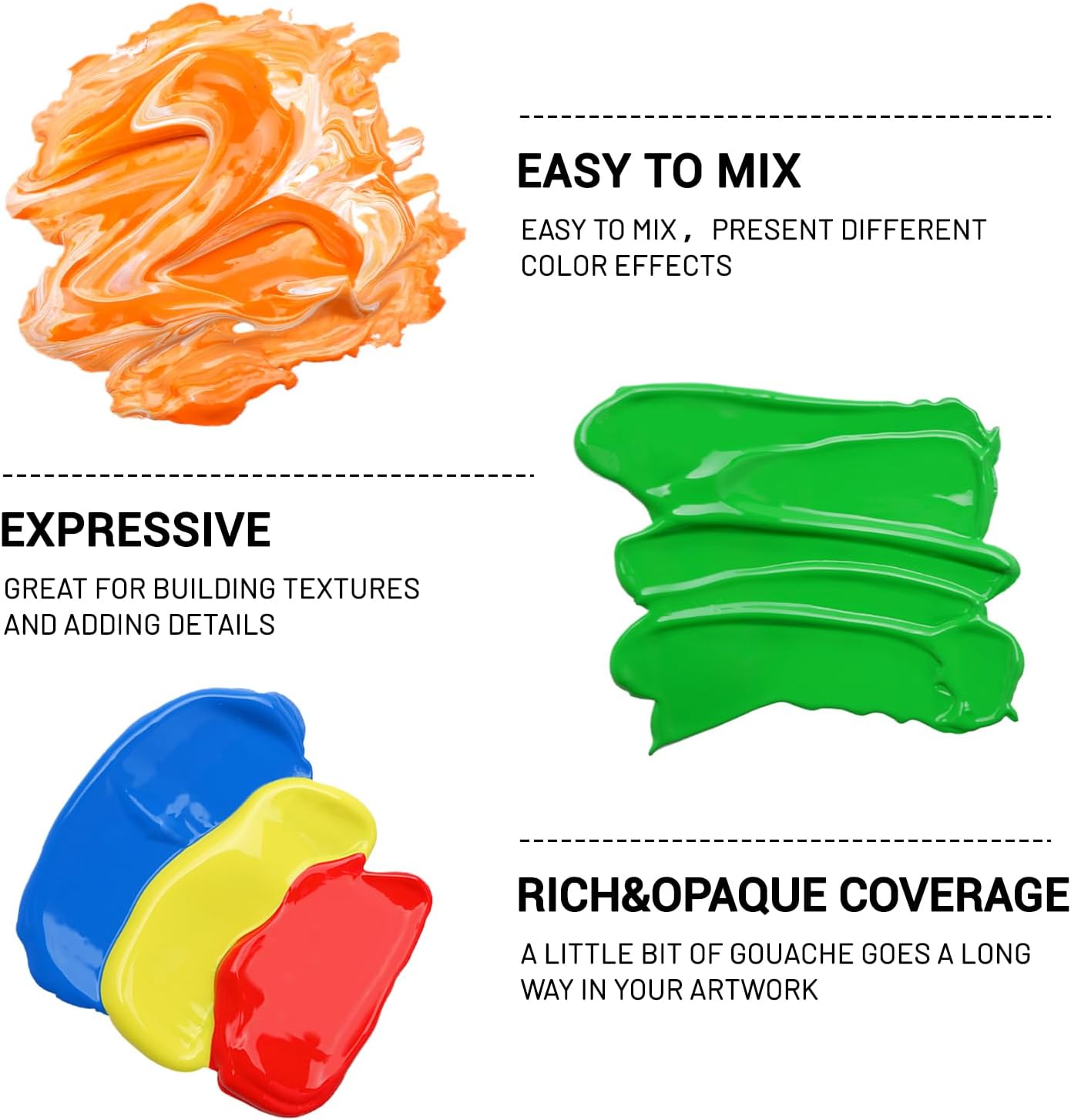 HIMI Gouache Paint Set, 56 Colors x 30 ml Jelly Cup Design in a Carrying Case, Non Toxic Gouache Paint for Canvas and Paper, Perfect for Artists, Students, and Beginners