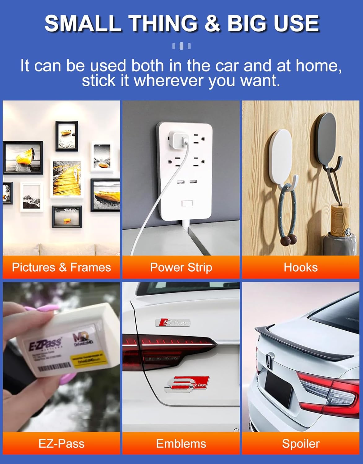 - 【Multi-Use Mounting Tape】The versatile design of this tape allows it to adhere firmly to a variety of smooth surfaces such as walls, glass, tiles, aluminum, metal, and wood. It can be used for posters, hooks, plastic hangers, signs, nameplates, metal plates, wire and cable clamps, security cameras, photo frames, and other car home school office decorations.