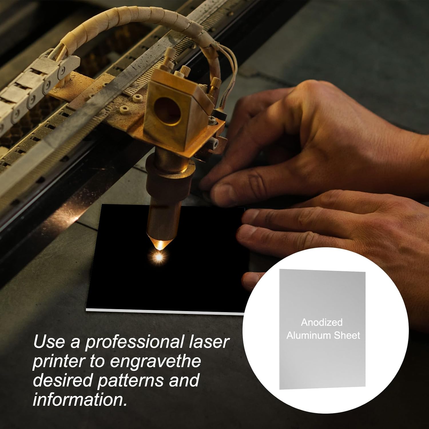 - NOTE: 1. The front of the anodized aluminum sheet has an anti-scratch layer, please take off it before use. 2. Please take personal protective measures when designing engraved items.