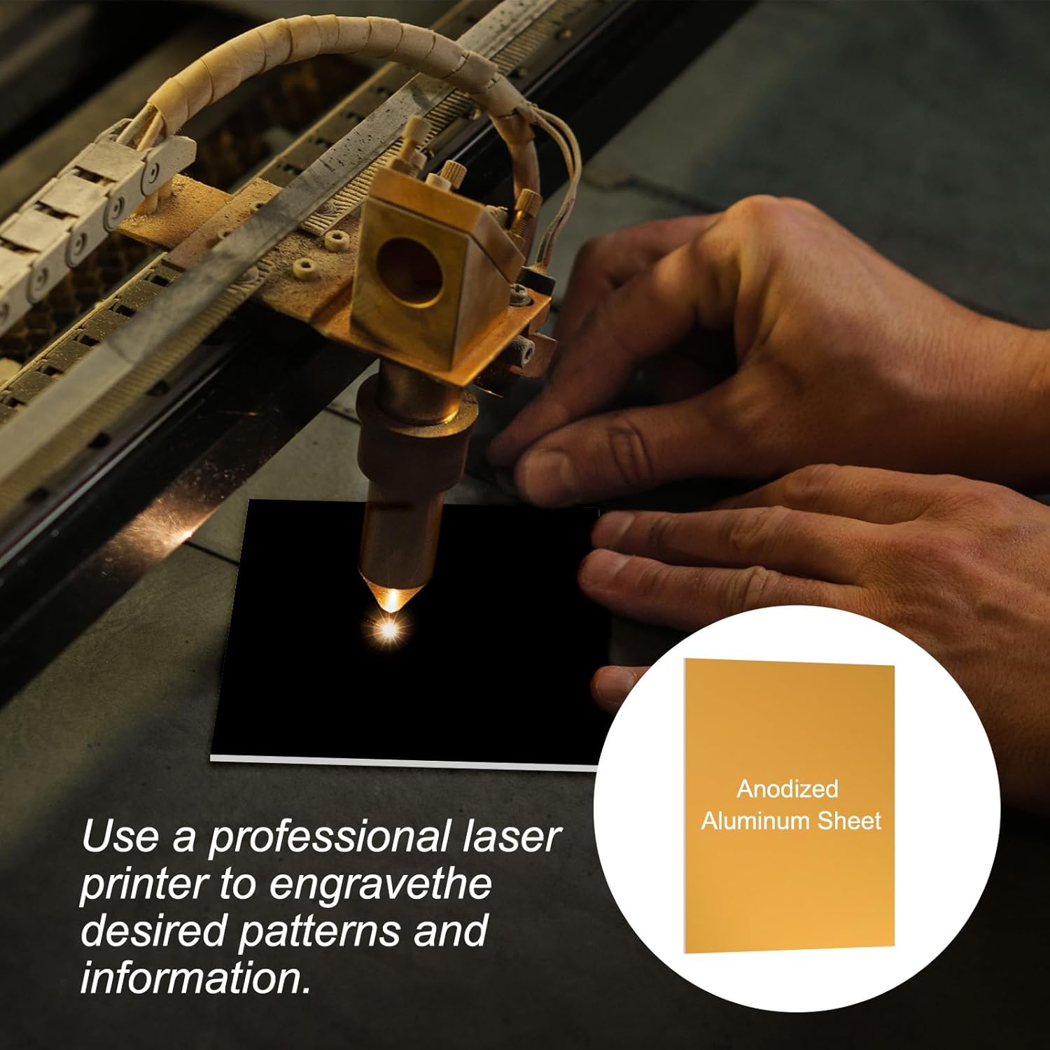 - NOTE: 1. The front of the anodized aluminum sheet has an anti-scratch layer, please take off it before use. 2. Please take personal protective measures when designing engraved items.