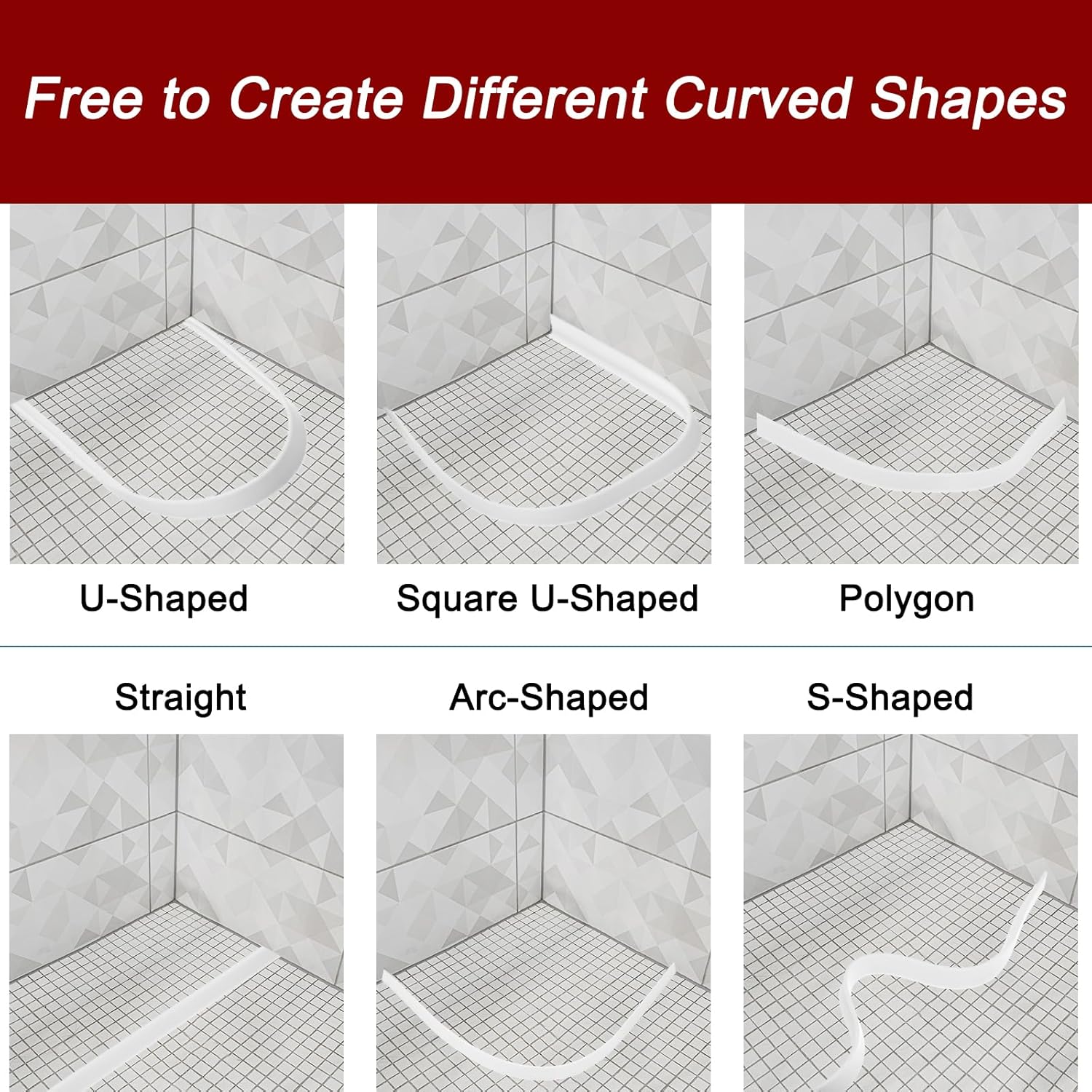 - [Wide Application] - The flexible molding trim can be adhered to almost any smooth surface, including walls, floors, tiles, corners, and so on. It can be widely used in bathrooms, showers, basins, bathtub edges, toilets, kitchens, laundry rooms, etc.