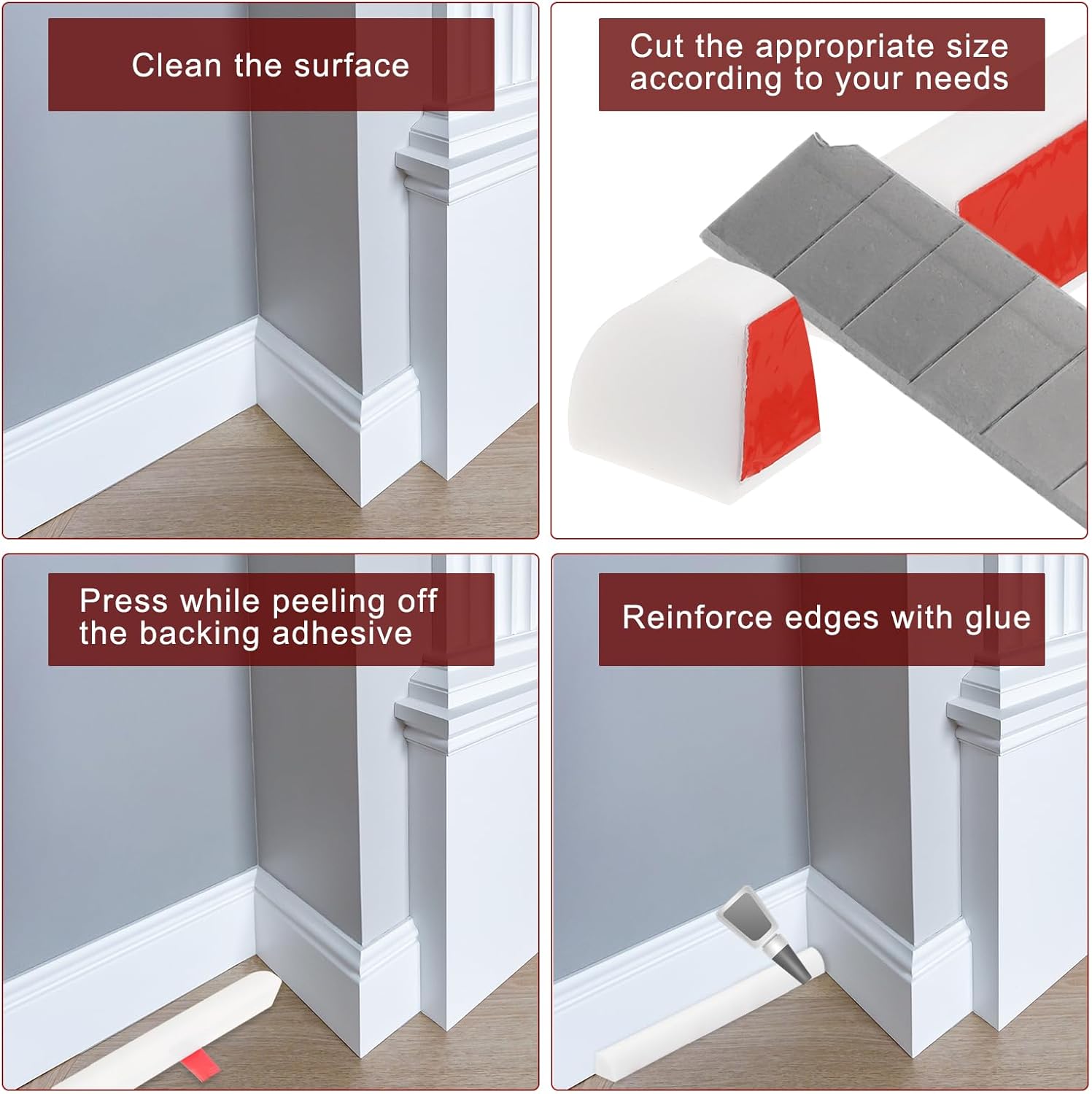 - [Easy to Install] - First cut to the length you need, clean and dry the surface, then peel off the adhesive strip to install. In order to enhance the fixation and waterproof effect, it is recommended that you use sealant glue to glue the bottom edge (Sealant glue is not included).