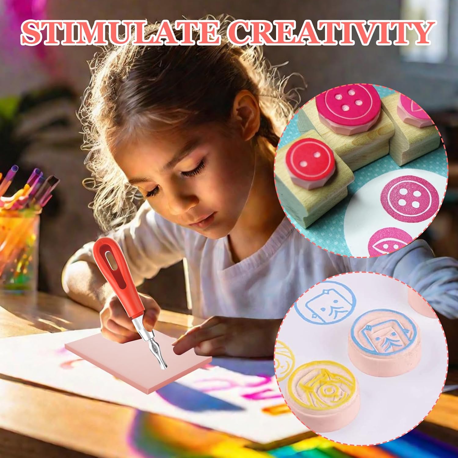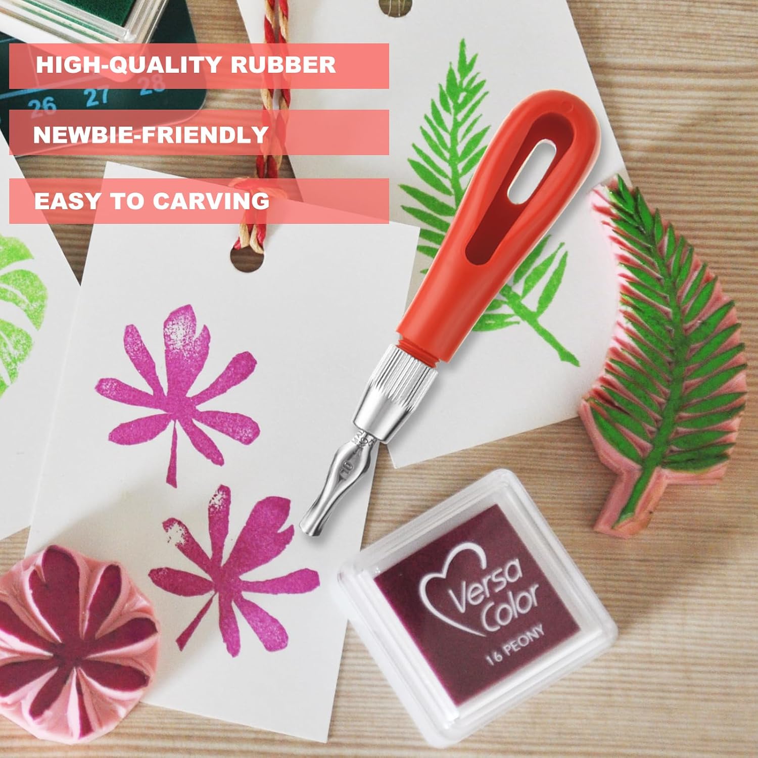 - Value Pack: This stamp making kit includes 14 pack pink rubber carving block measuring 5.9" x 3.9" x 0.24" and carving tools with 6 different carving blades