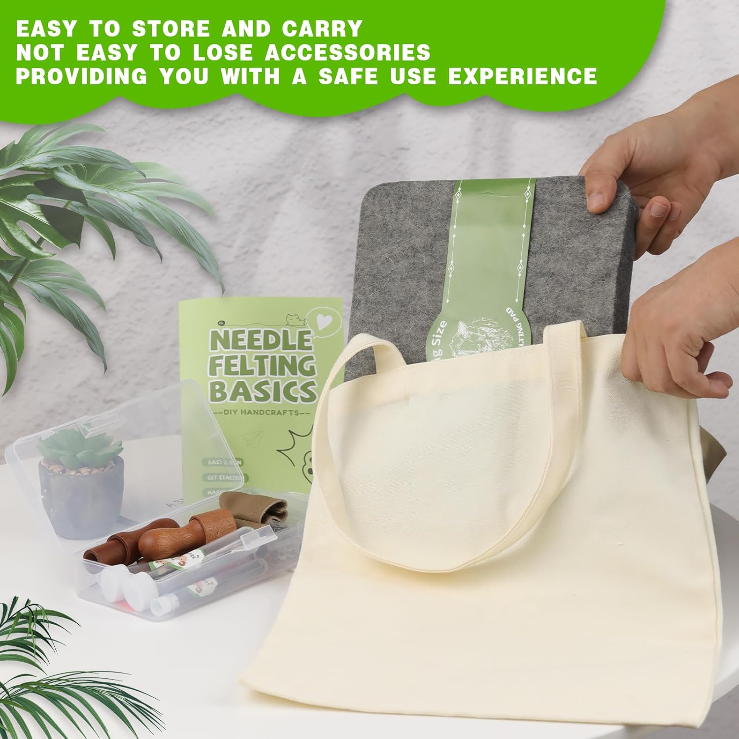 - Needles Felting Tool Kit: You will receive 90 felting needles (36 gauge, 38 gauge, 40 gauge, 42 gauge), 3 kinds of felt needle wood handles, 1 large needle felting mat (8in*10in), a pair of finger cots, scissors, 50 diamond straight pins, an awl and a canvas bag, is a complete needle felting tool kit.