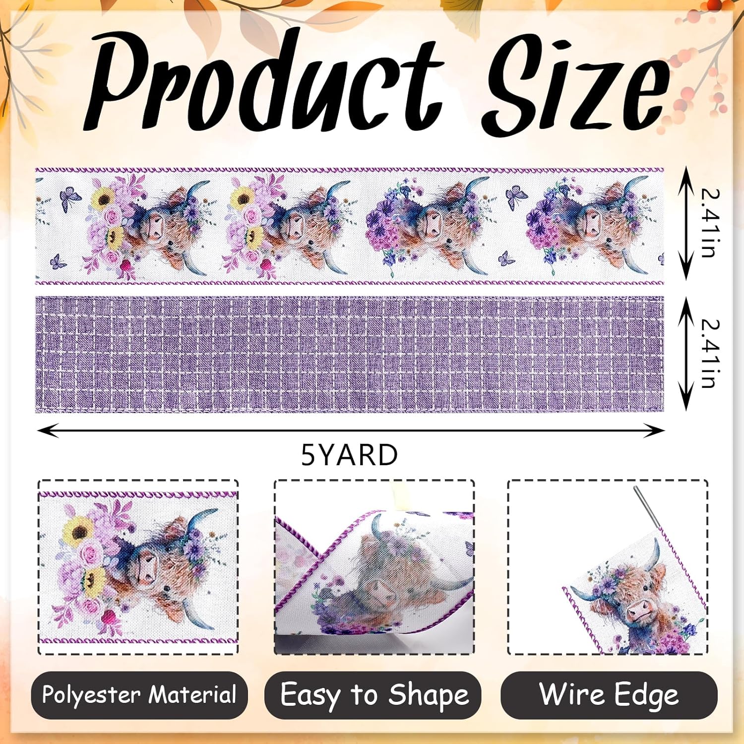 - Autumn Harvest Ribbon Design: The fall ribbons feature exquisite designs with cute calf ribbons and white-purple buffalo plaid ribbons. This autumn harvest-themed ribbon is full of auspicious and joyful atmosphere, meeting the needs of autumn harvest festival decorations and packaging. The elegant, vintage country style will elevate your decorations to a higher level. You can also give them as gifts to friends and family who want to decorate for the holidays.