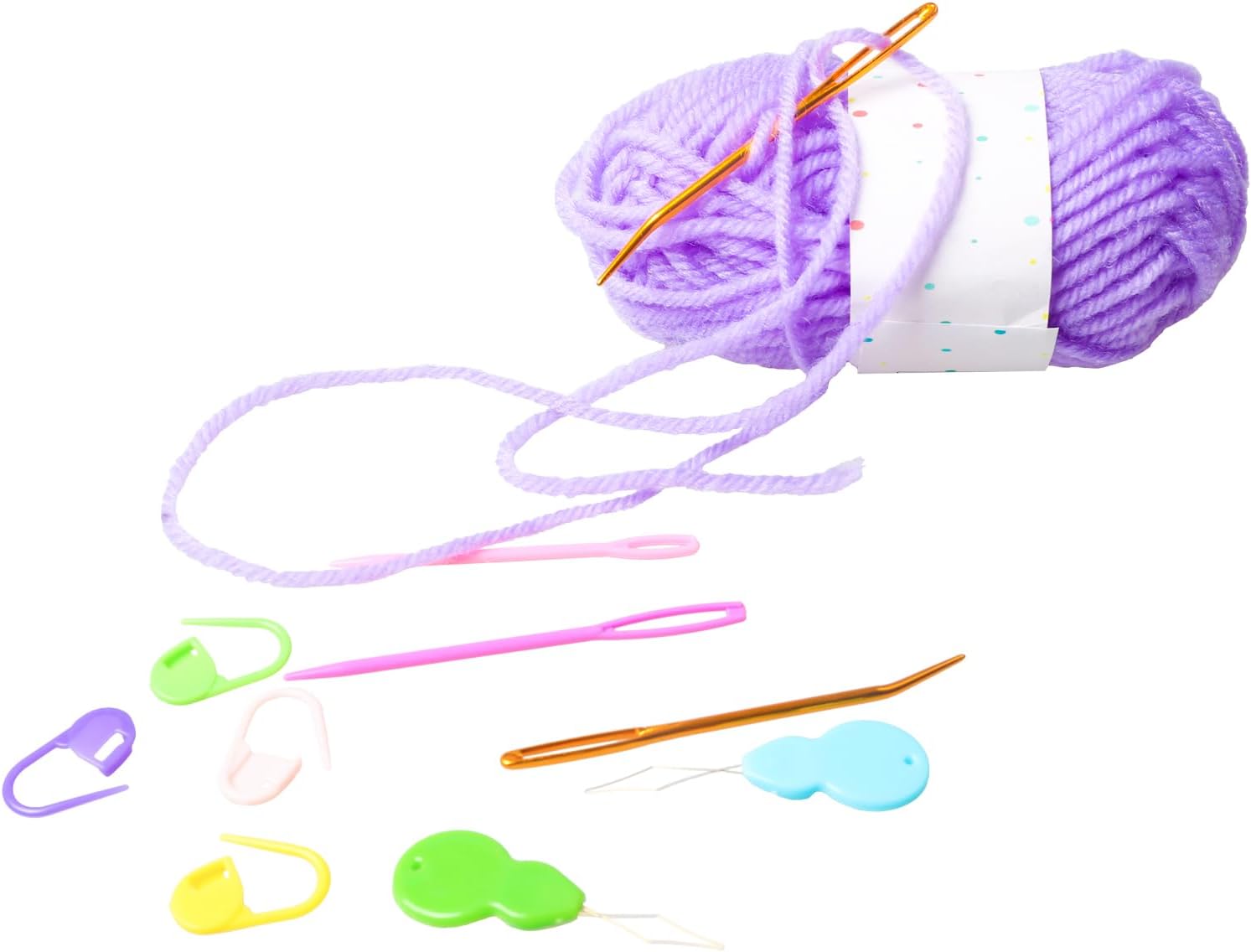 Hekisn 45Pcs Large Eye Blunt Yarn Needles kit, Assorted Sizes Bent Tapestry Darning Needle, Sewing Needles with Needle Threaders & Stitch Markers for Knitting Crochet (Purple&White)