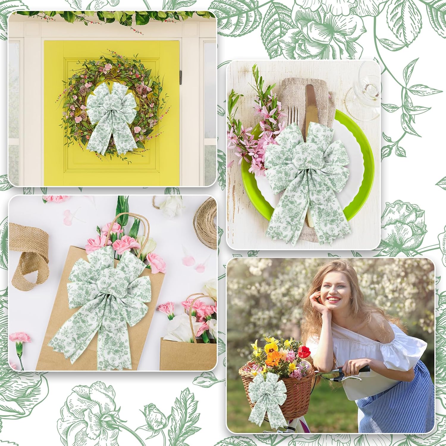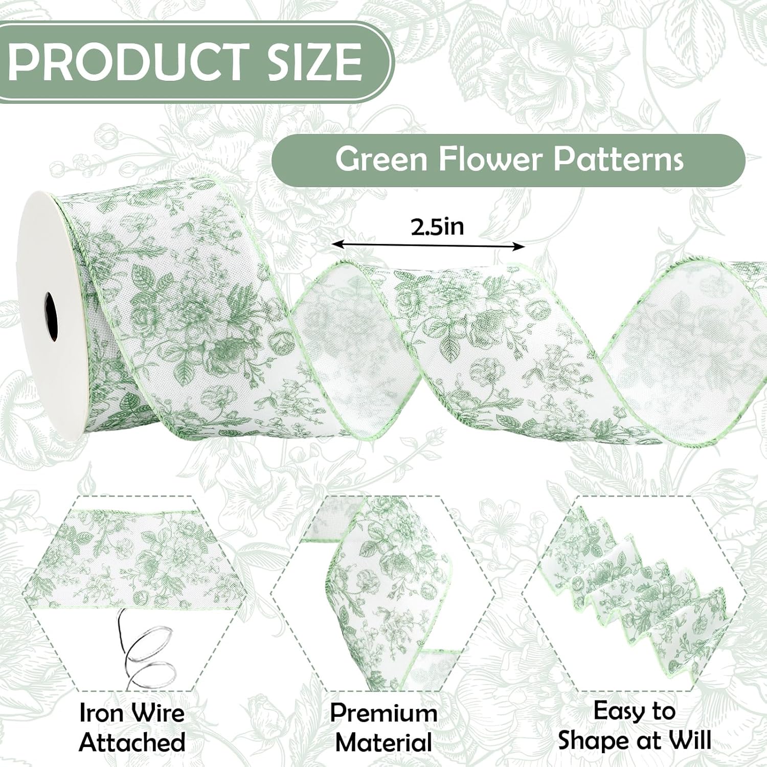 - FLORAL DESIGN: Our wired edge ribbon is designed with various chinoiserie flowers and colored in green, elegant and delicate, will nicely increase fun atmosphere.