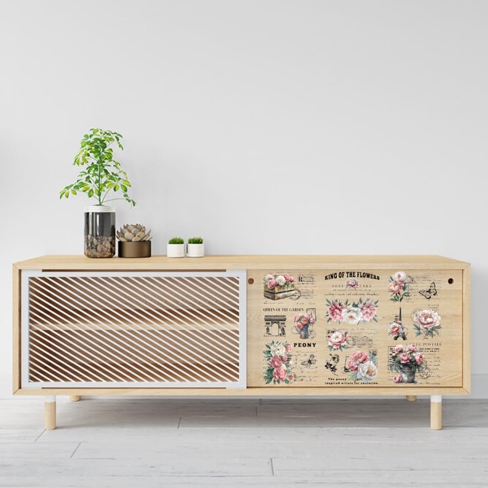 - Vintage Pink Peony Theme: 1 set 3 sheets transfer stickers, the single sheet size about 150x300mm/6x12inch, composed of pink peony. Perfect for furniture decoration.