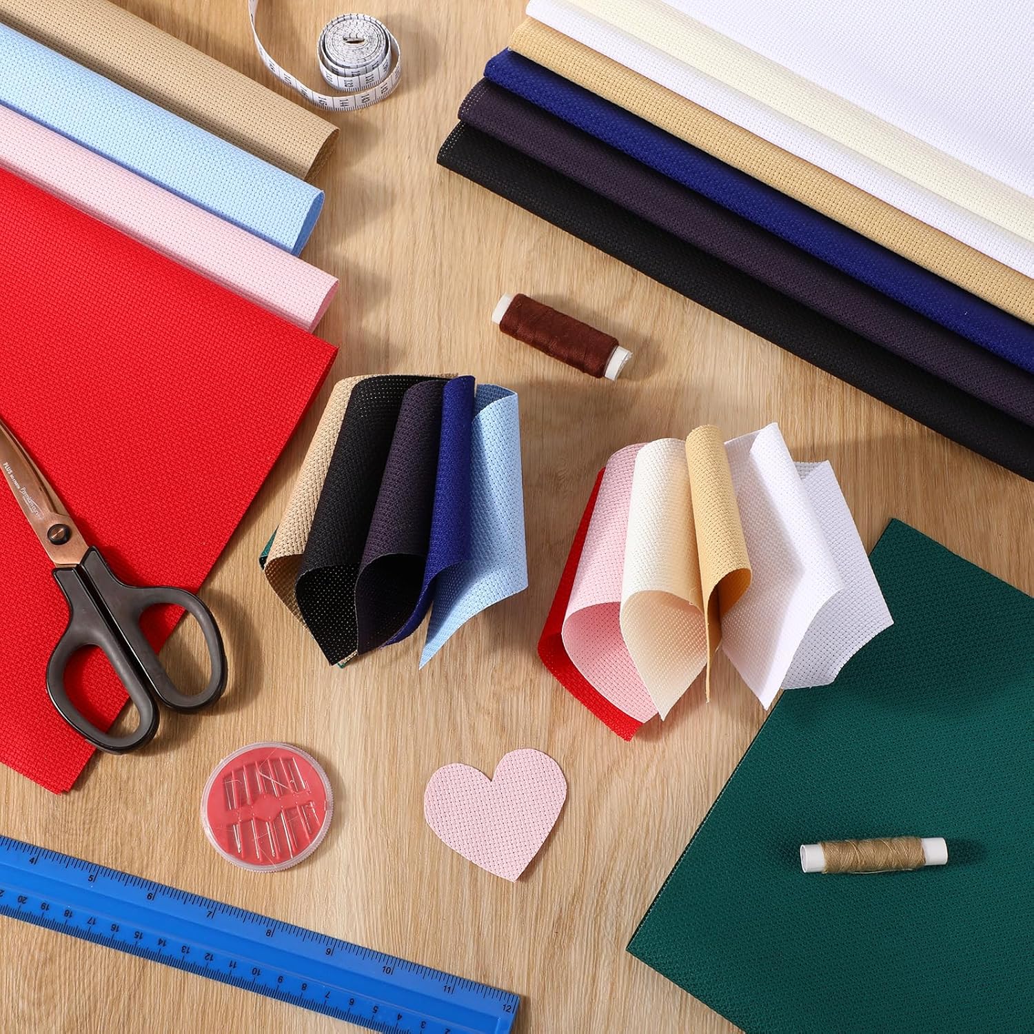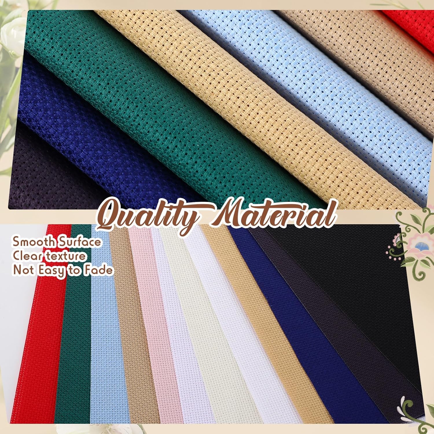 12 Pcs Aida Cloth 12 Color 14 Count Cross Stitch Fabric DIY Cross Stitch for Embroidery DIY Handmade Art Craft, 12 x 18 inch(Colorful)