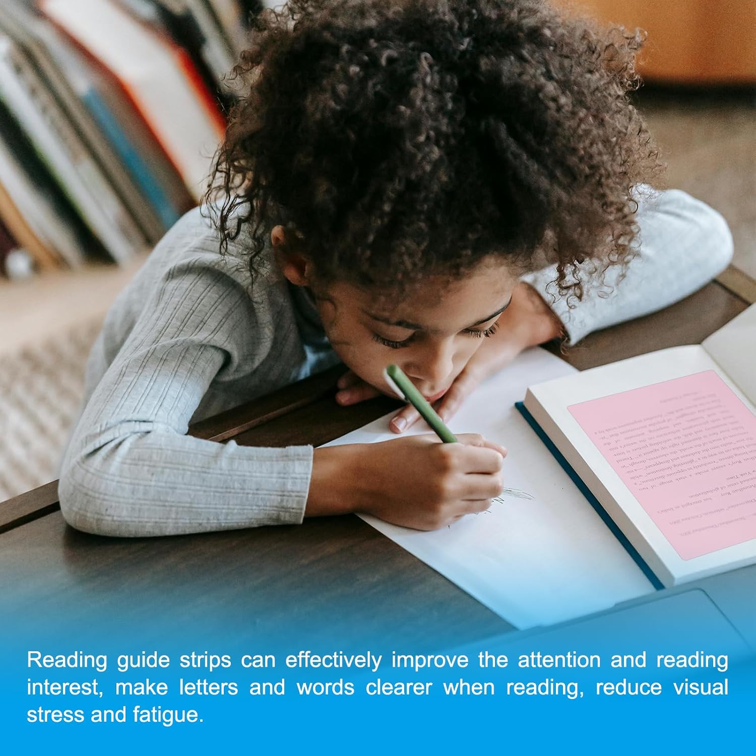 - Application: These Guided Reading Strips are a set of highlight colored overlay bookmarks, designed to reduce visual stress and improve focus while reading. Teachers can use them in the classroom to assist little ones with reading and reduce visual stress. They are also great for individuals who have difficulty focusing while reading, as the color helps maintain attention. Whether you are studying, teaching, or simply enjoy a book at home, these strips are a valuable tool.