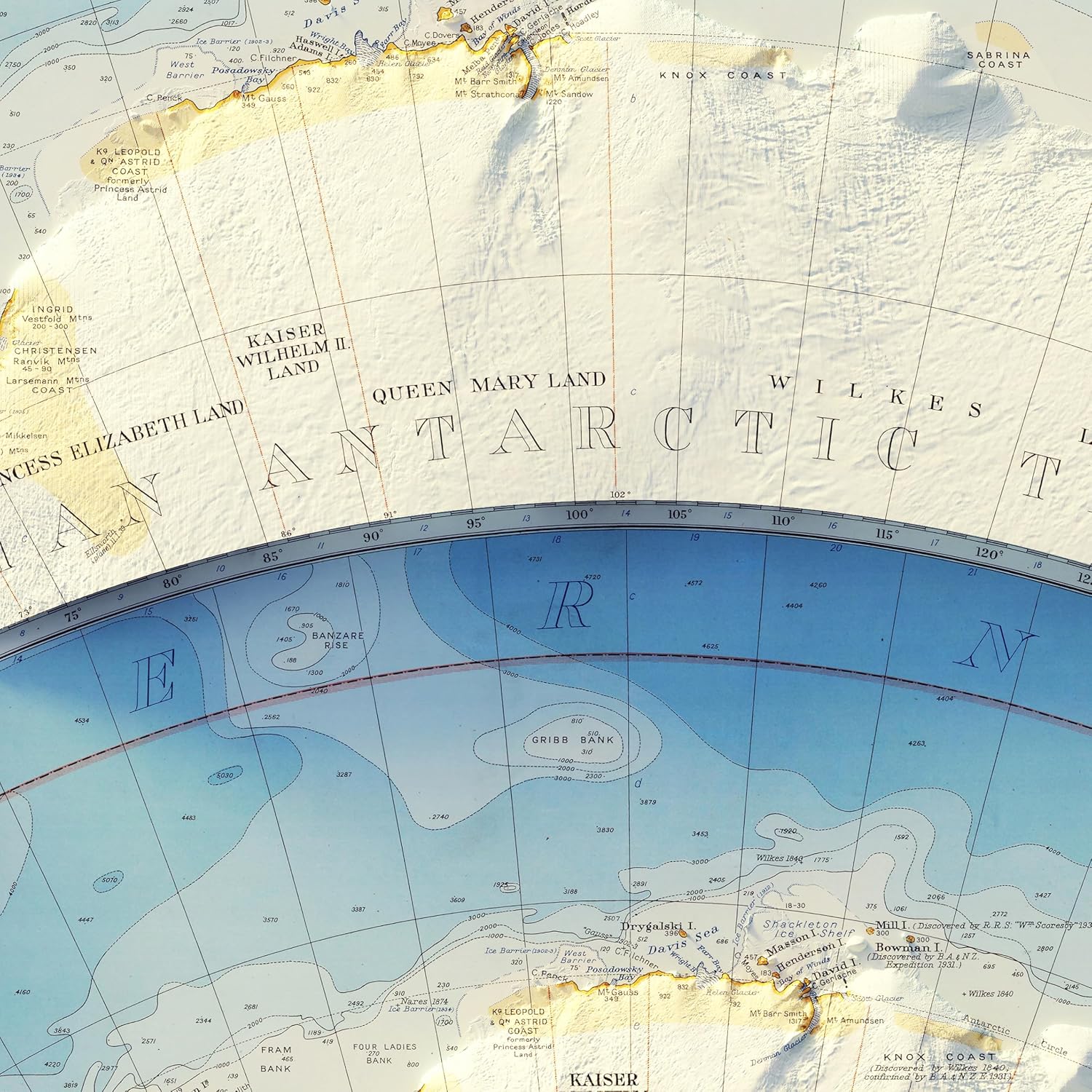 - Antarctica in Rare Vintage Topographic Form: Discover the glacial plateaus, ice shelves, and ridgelines of Earth’s southernmost continent. This shaded relief map blends vintage cartographic styling with modern elevation data to create a true 3D topographic wall art piece – a bold and rare view of a rarely mapped landscape.