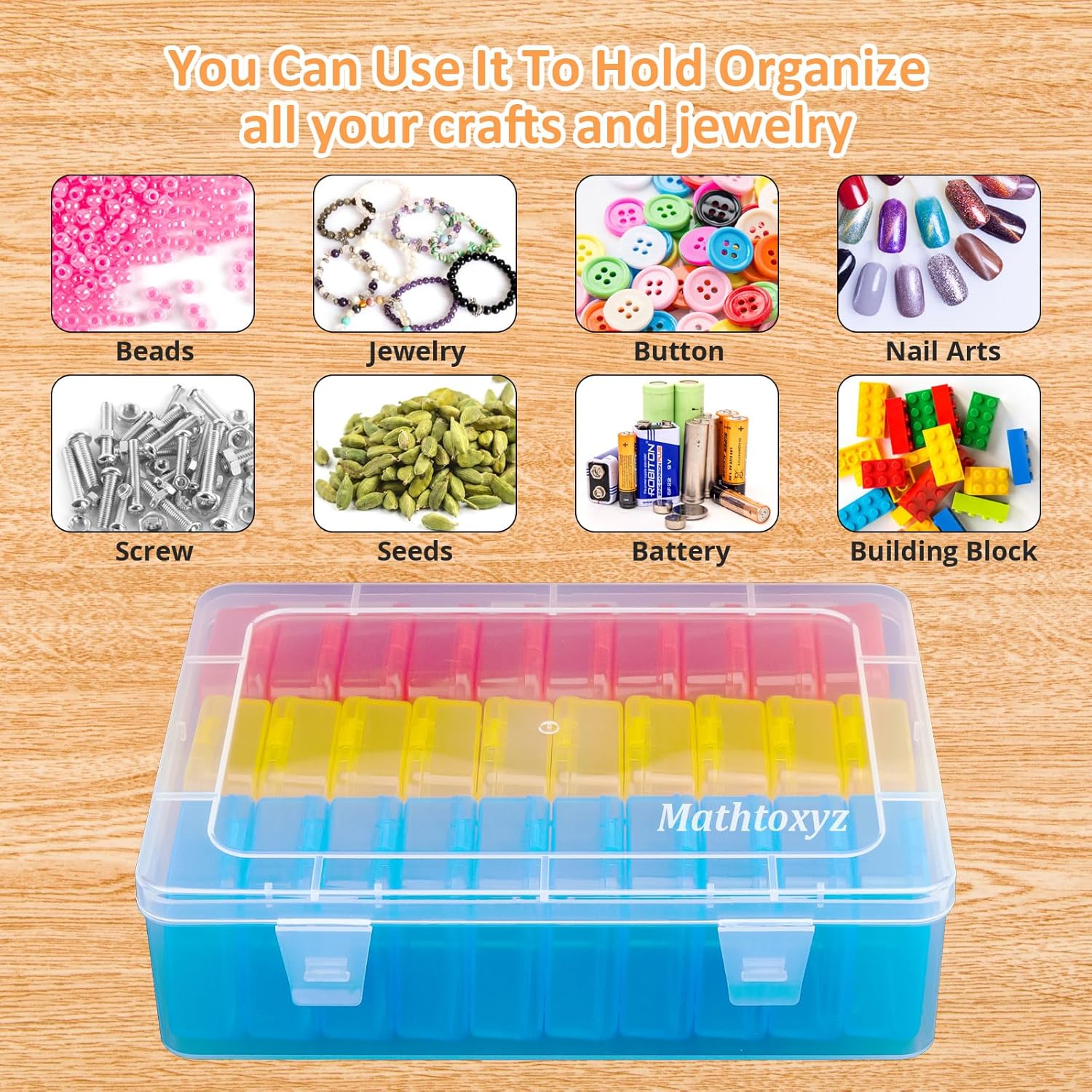 Mathtoxyz Bead Organizer Box(Red,Yellow,Blue), 93Pcs Small Bead Organizers and Storage Plastic Cases Mini Clear Containers Boxes with Hinged Lid and Rectangle for Bracelet Making DIY Jewelry Craft