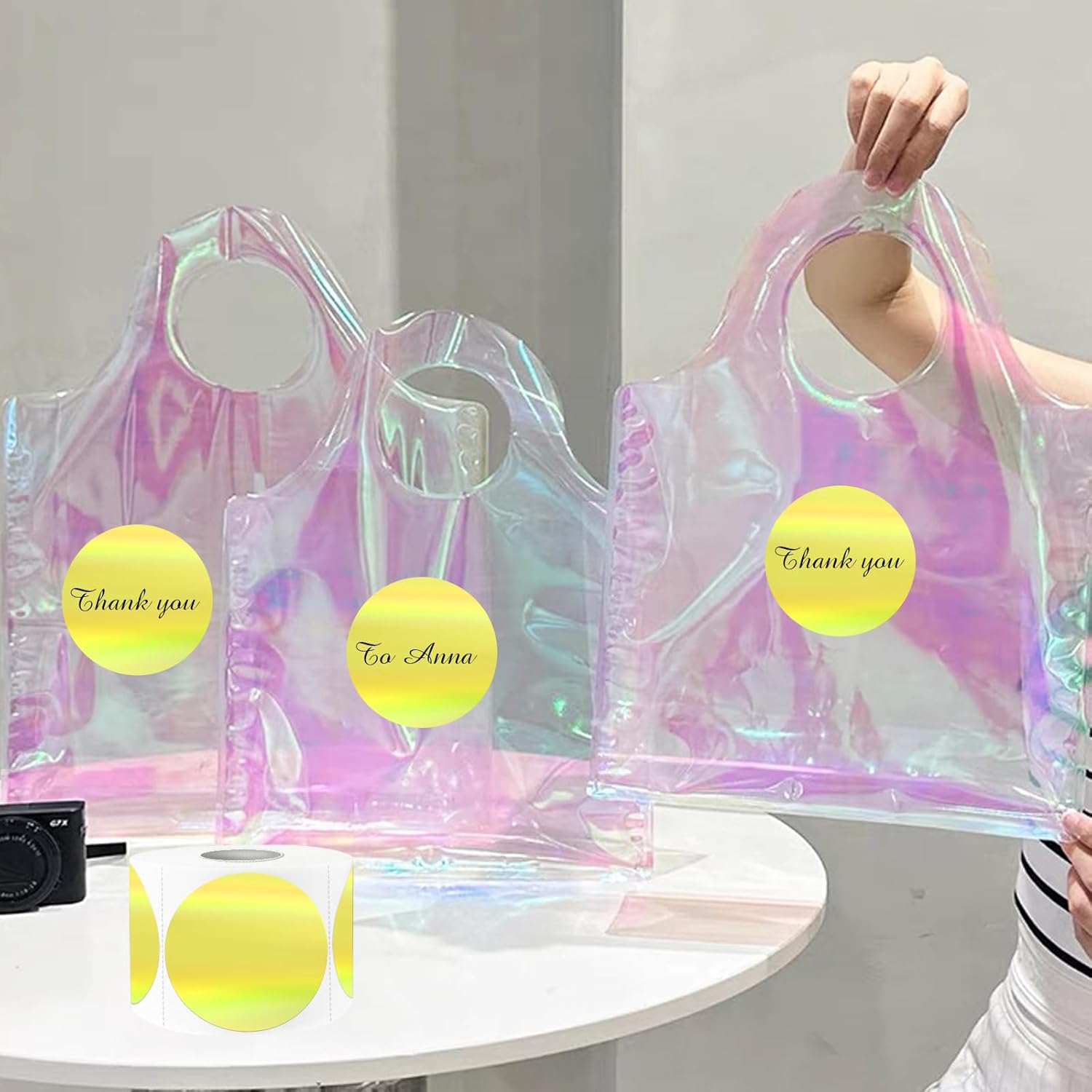 - Holographic Yellow Thermal Sticker Labels: Printed on rainbow metallic vinyl, the color of the surface of the sticker can be changed under the light with the move, which is beautiful and charming! Our holographic stickers offer an amazing visual experience like and leave a remarkable impression