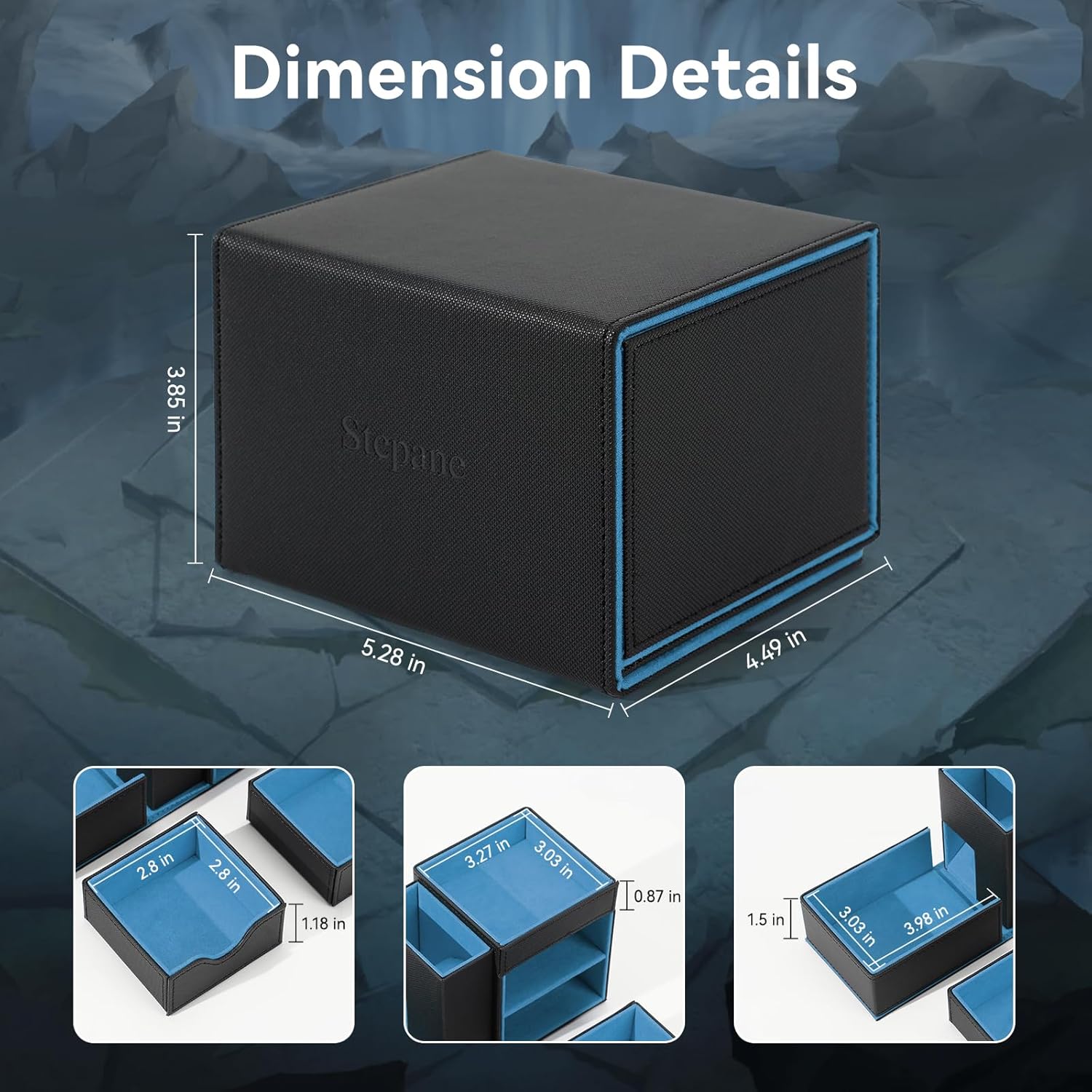 - High-capacity Storage: The Stepane Dice Box's tiered design increases storage capacity while ensuring a more compact overall; with two organizer drawers and an open platform large enough to hold two sets of standard gaming multi-sided dice, you are free to place your gaming accessories in an thoughtful and comprehensive design