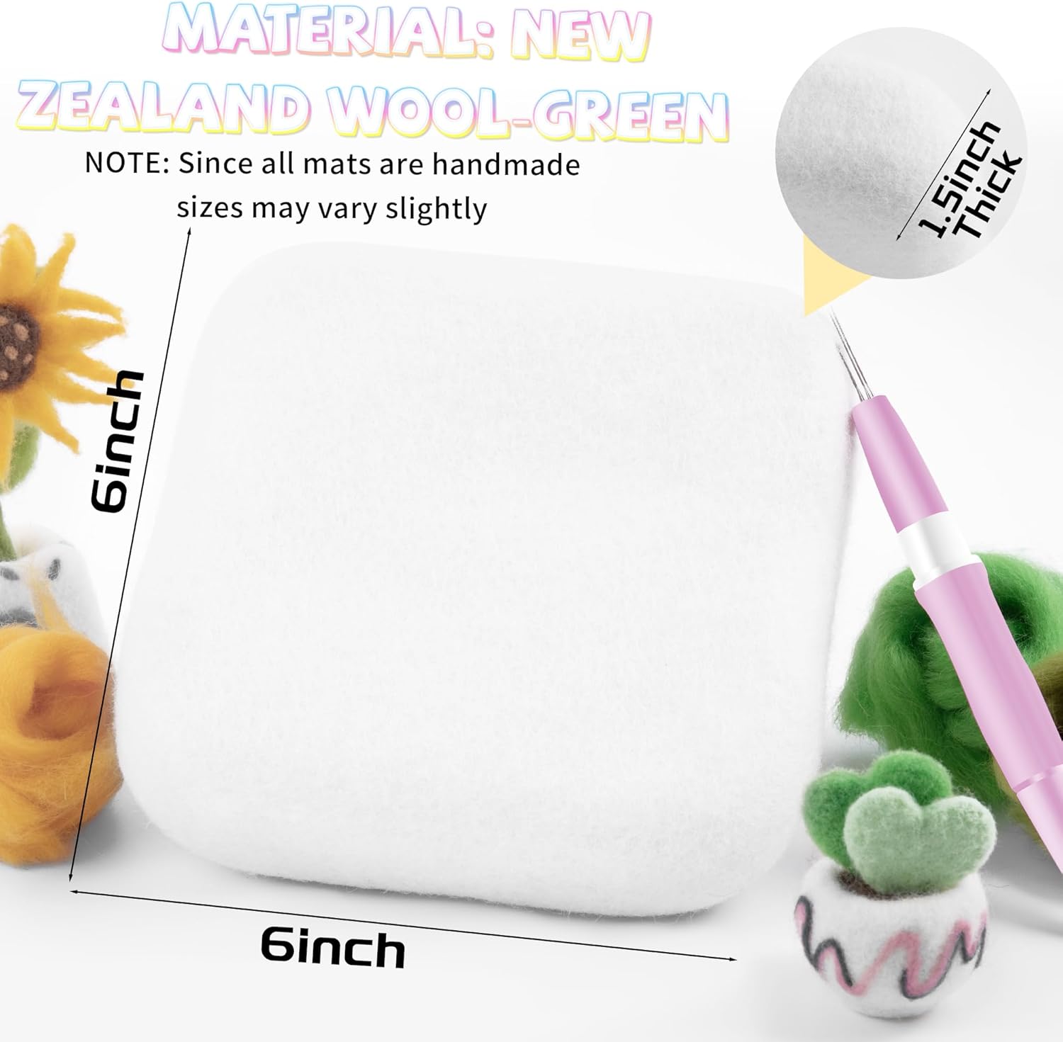 - 【Needle Felting Mat size】:6x6x1.5 inches,Thick and Firm Needle Felting Mat are made of premium New Zealand wool.which ensures long-lasting use. Compared to foam mat spongy mat never collapse fall apart.suitable for many felting project.