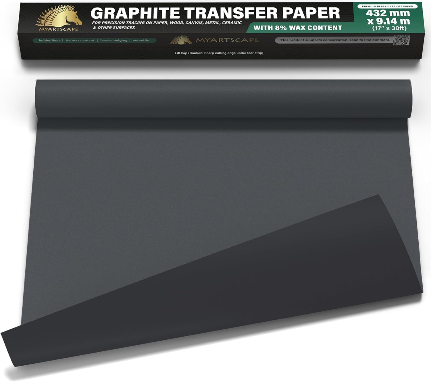 MyArtscape Graphite Transfer Paper Roll - Black Waxed Carbon Paper 17" x 30ft Transfer Paper Roll, Graphite Paper, Precise Carbon Paper Ideal as tracing Paper for Drawing