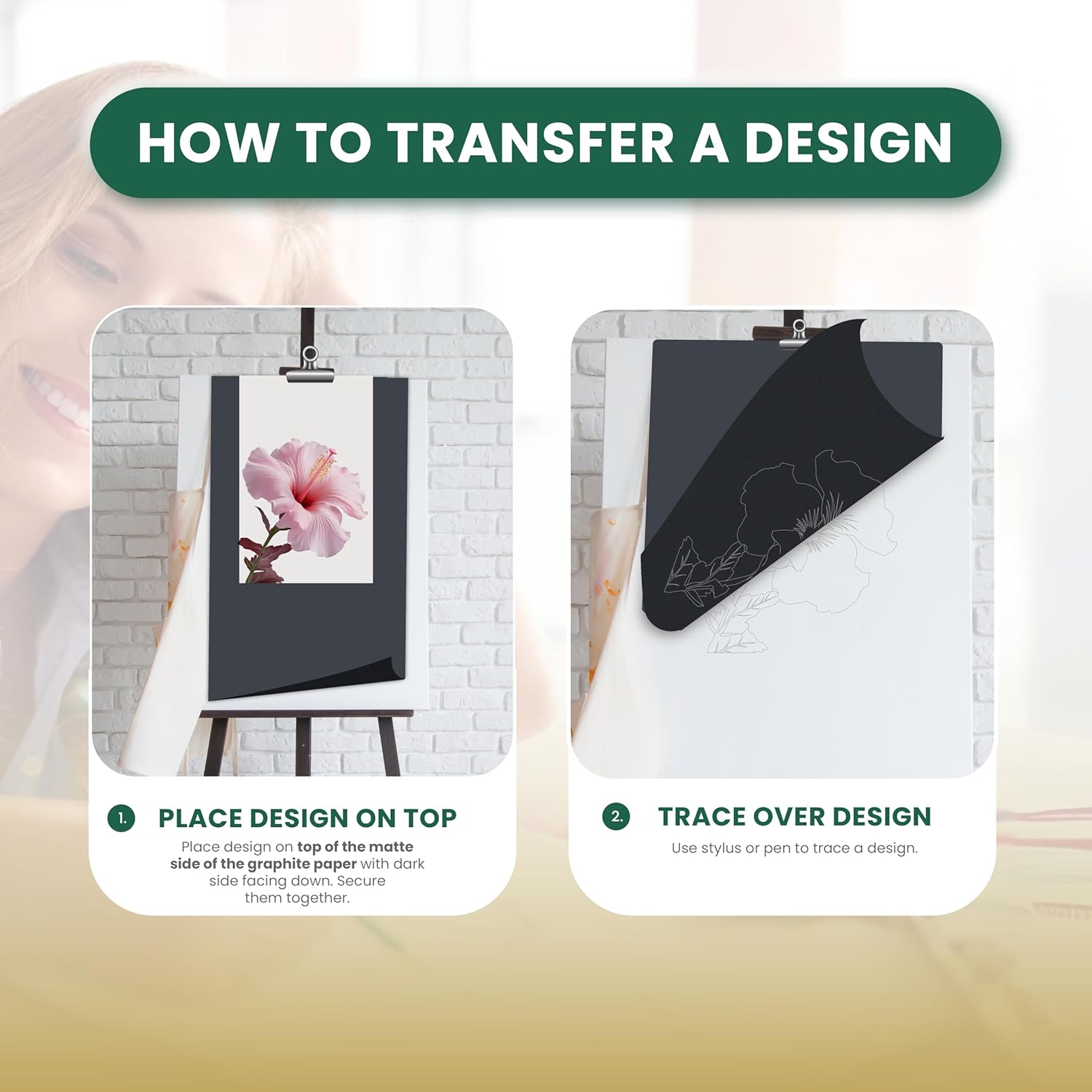 - VERSATILE AND PRECISE FOR MOST SURFACES: Premium transfer paper for drawing and sketching. Easily copy, duplicate, trace and transfer your designs to canvas, paper, wood, glass, metal, toles, ceramic, clay and more.