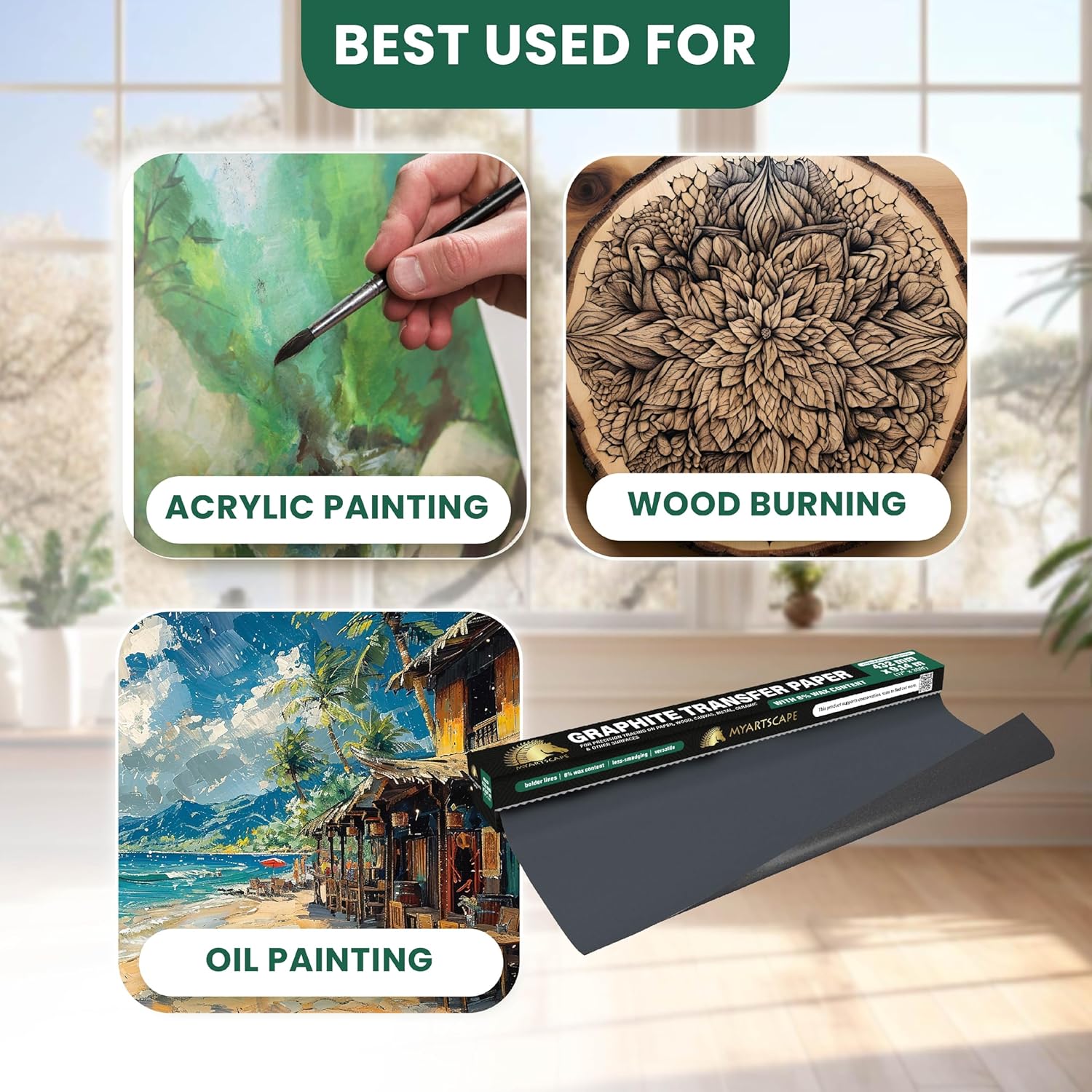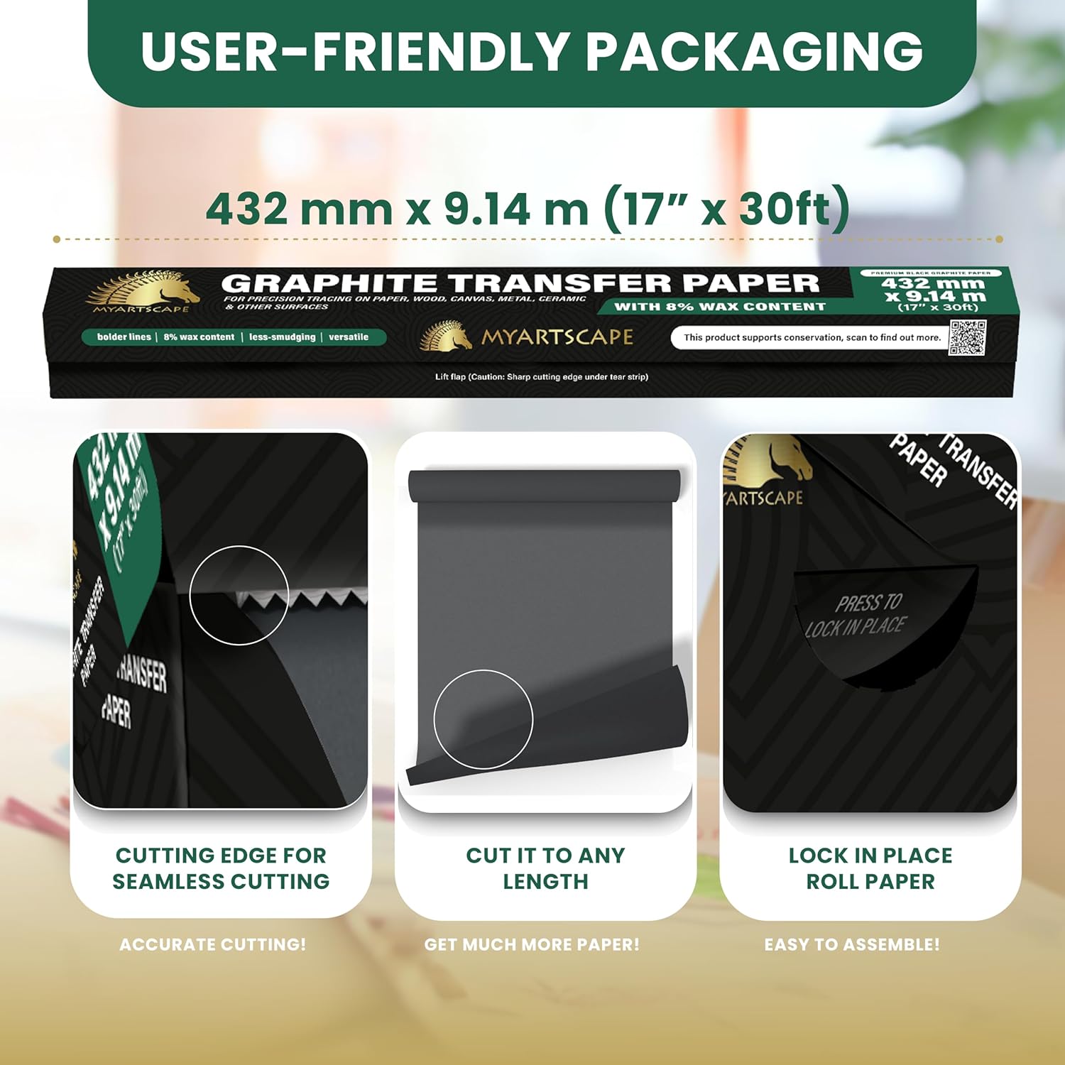 - TRACING PAPER ROLL - The MyArtscape Graphite Transfer Paper Roll is longer and wider with 17" x 30ft dimensions which means increased versatility and convenience covering a larger surface, much wider and longer than the other brands.
