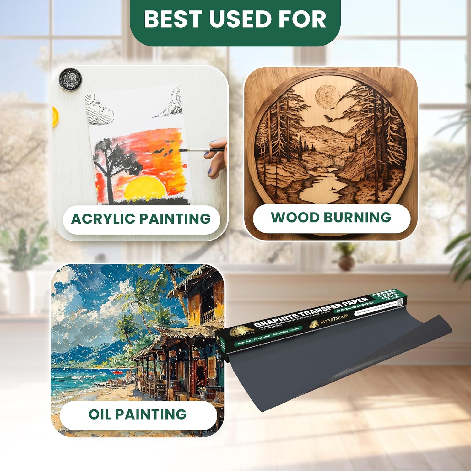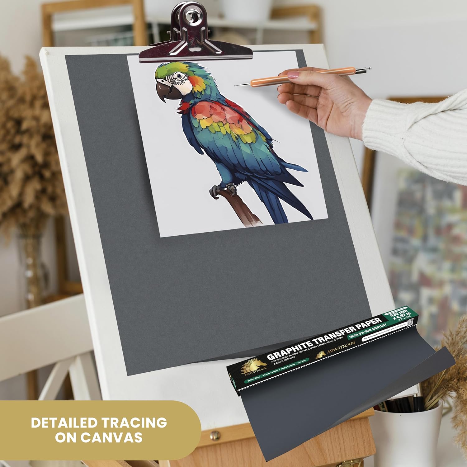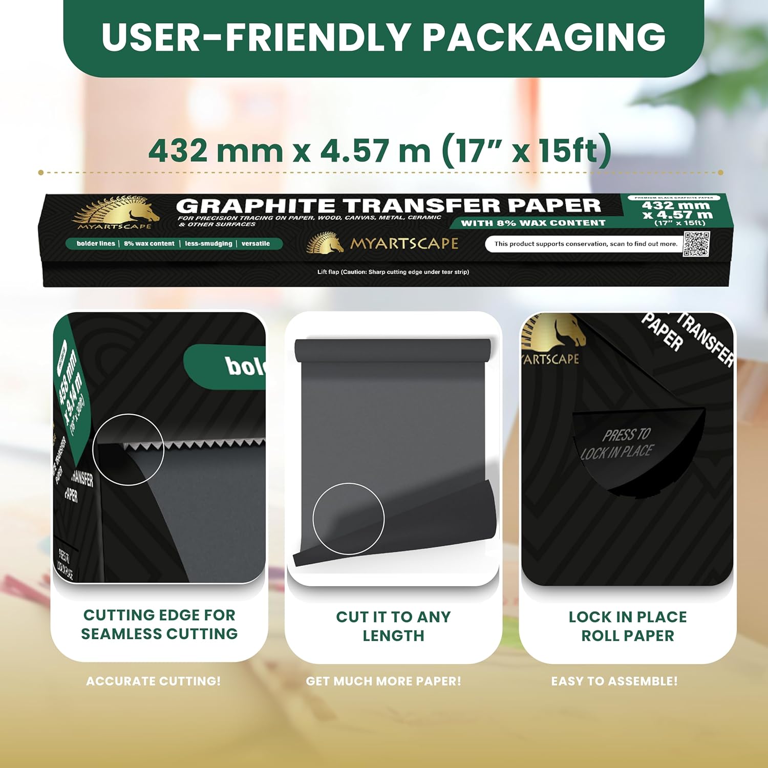 - TRACING PAPER ROLL - The MyArtscape Graphite Transfer Paper Roll is longer and wider with 17" x 15ft dimensions which means increased versatility and convenience covering a larger surface, much wider and longer than the other brands.