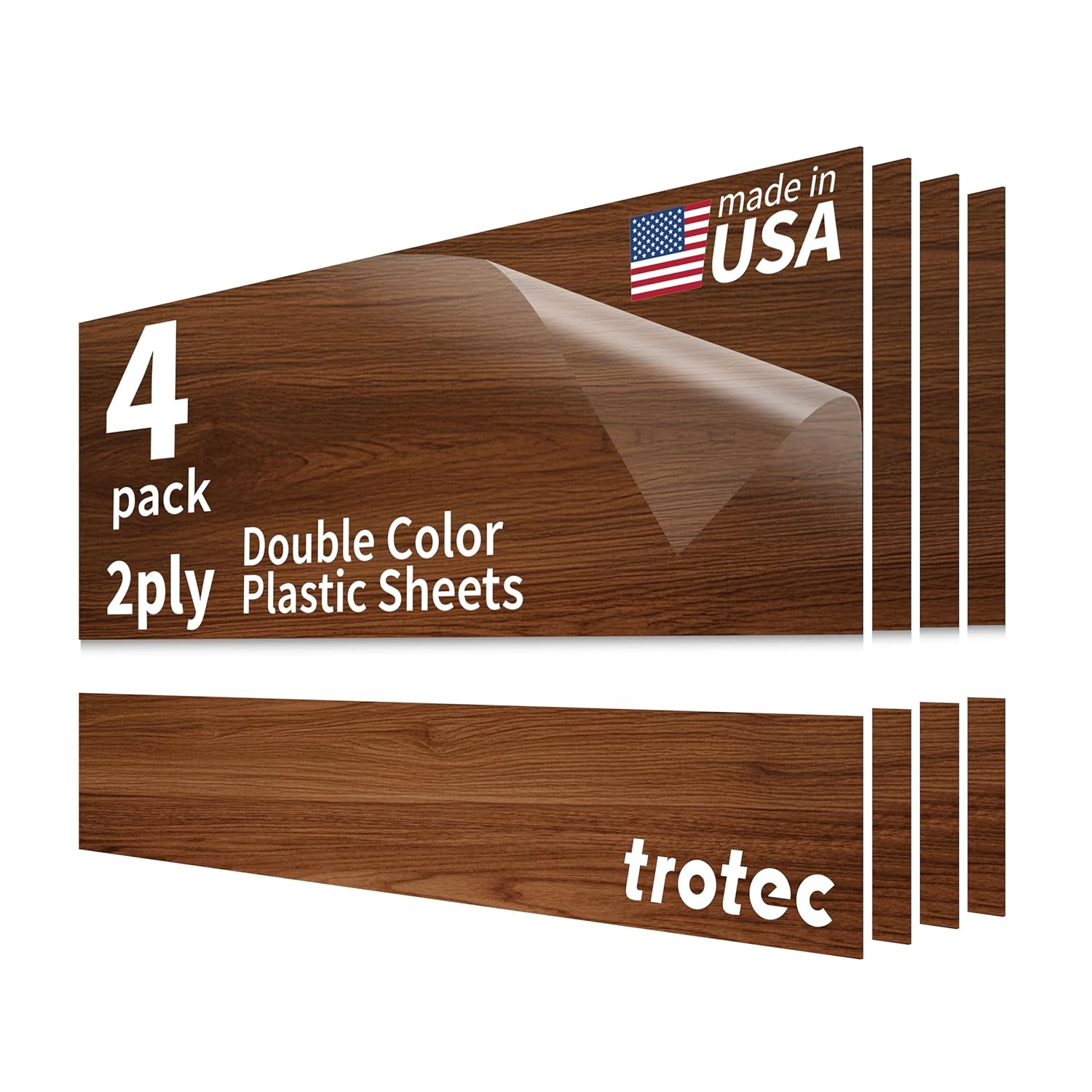 Trotec TroLase | 12"x24"x1/16", 4 Pcs | Pearwood/White | 2 Ply | Modified Acrylic | Laser Engraving Double Color Plastic Sheet | Engraving Blanks for Laser, Saw, Guillotine | Made in USA